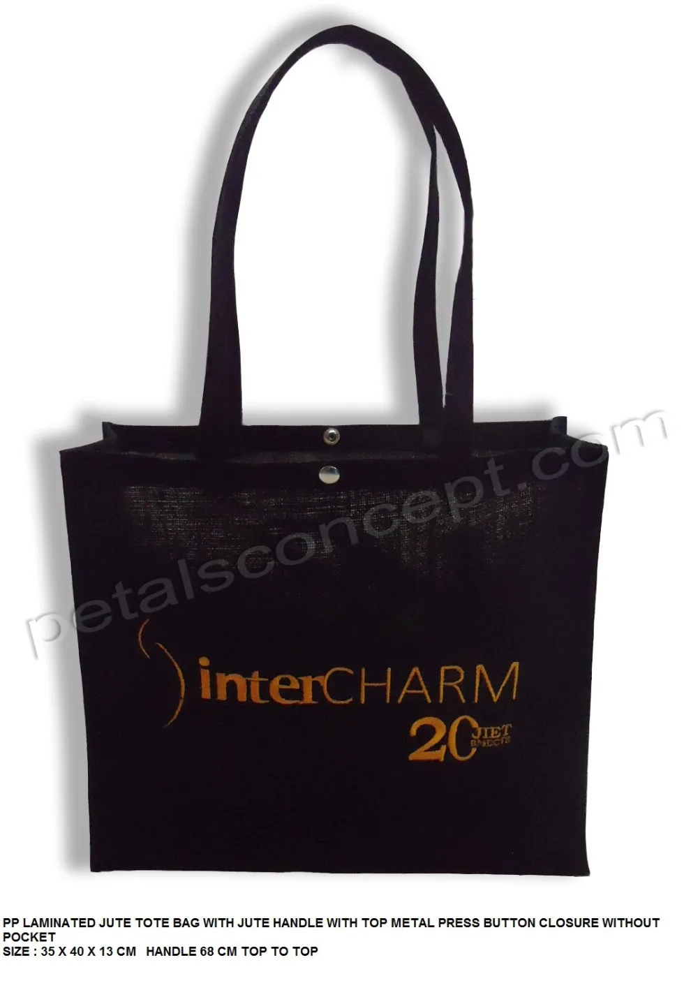 Burlap Bag From India With Jute Handle & With Press Button Closure