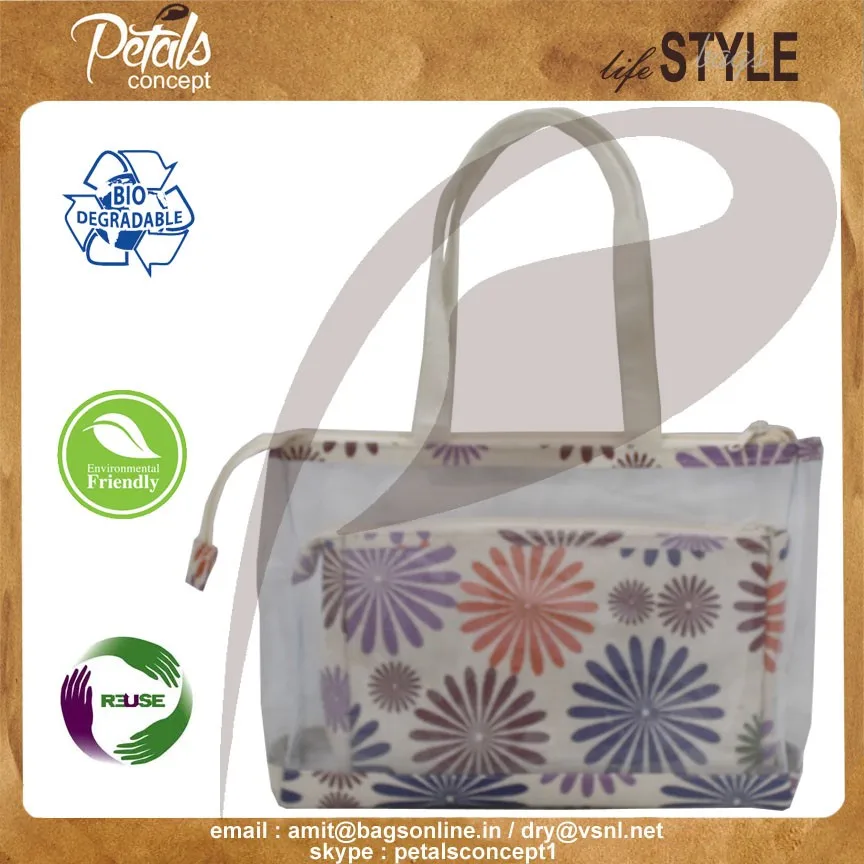 Customize Flora Print See Through Pvc Jute Tote Bag With Pouch