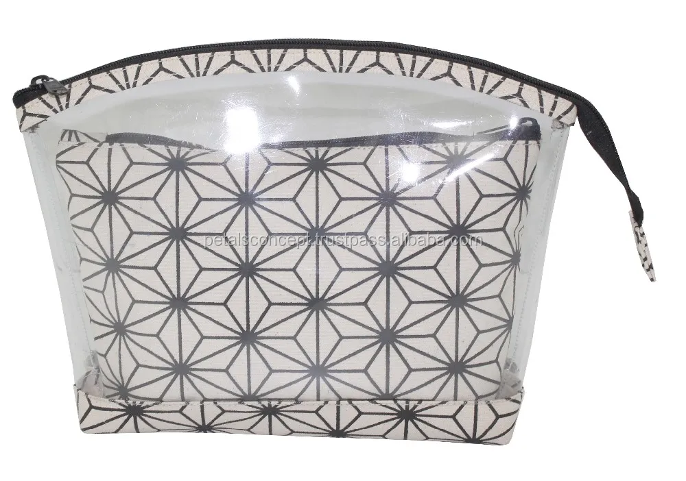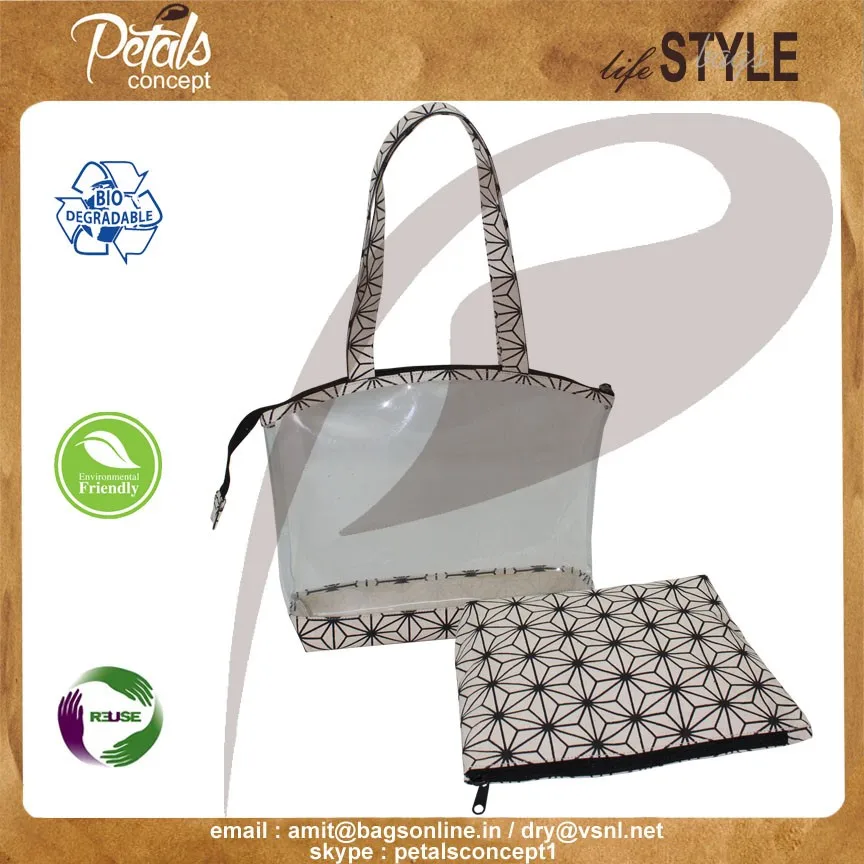 PVC See Through Tote Bag With Canvas Hand Pouch for Travel