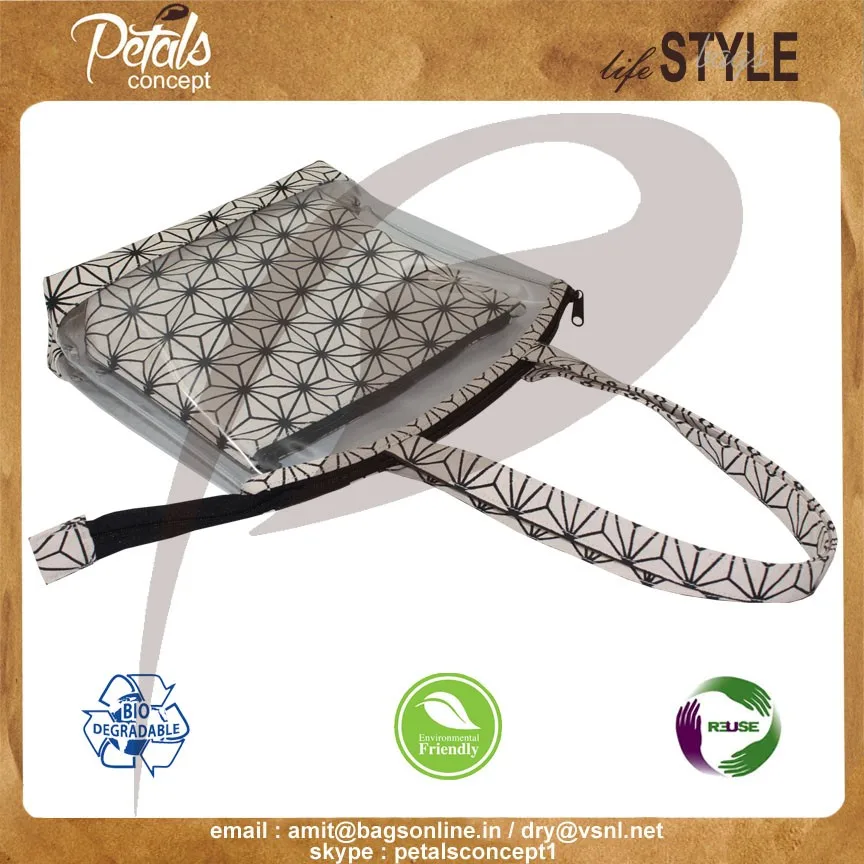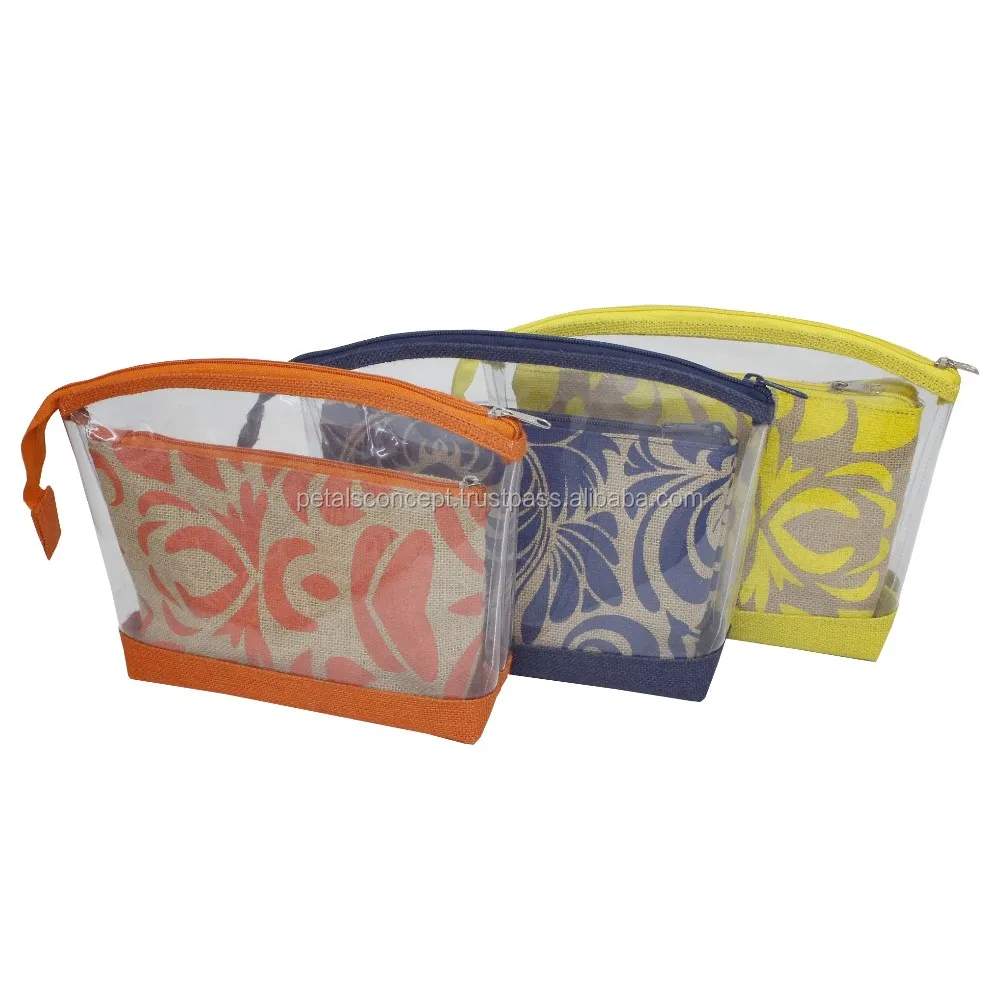 PVC See through jute Tote bag with travel pouch with one color print overall