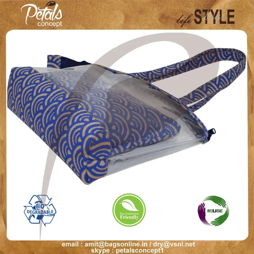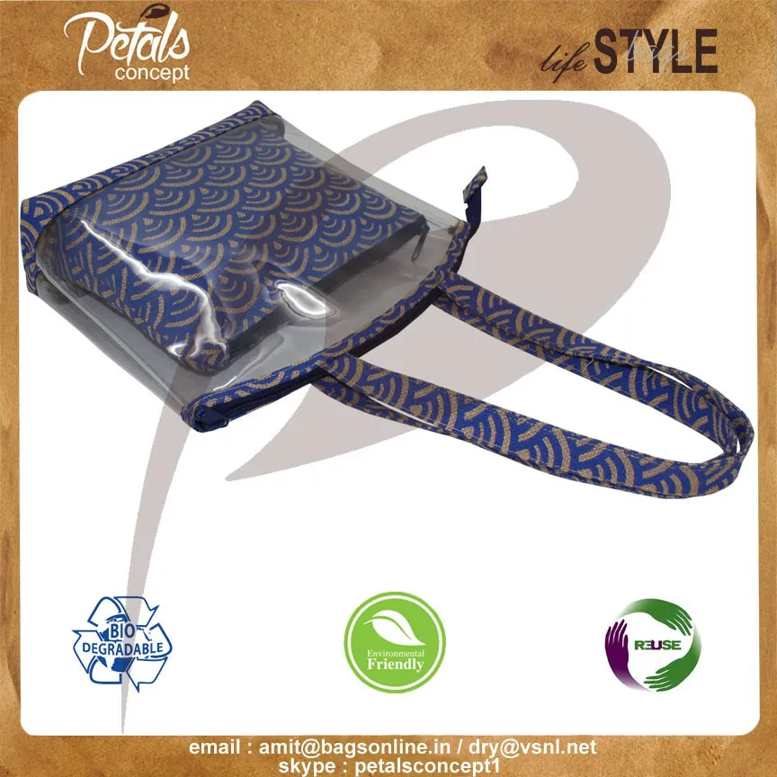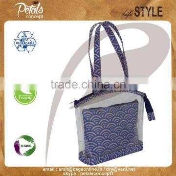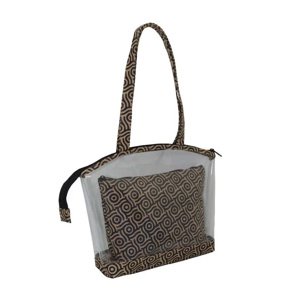 PVC See through jute Tote bag with travel pouch with one color print overall