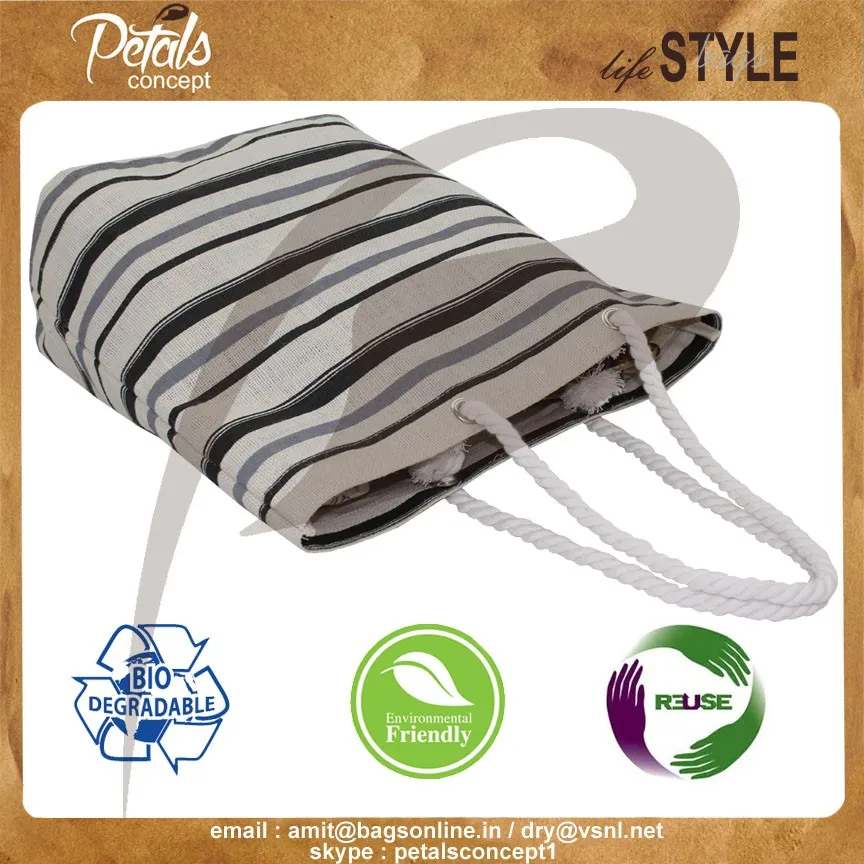 Jute Beach Bag With Multicolor Stripe Print for Fashion