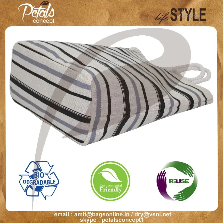 Our beautiful bags come in different shape , style , Size & design with variety of print like floral design , Animal texture print , landscape print , logo , Nature print , Stripe print etc with various option of Handle like Jute , cotton , web handle, Wooden handle ,Cane handle, Leather handle , Padded Rope handle , Bamboo handle etc & can be customize according to requirement.