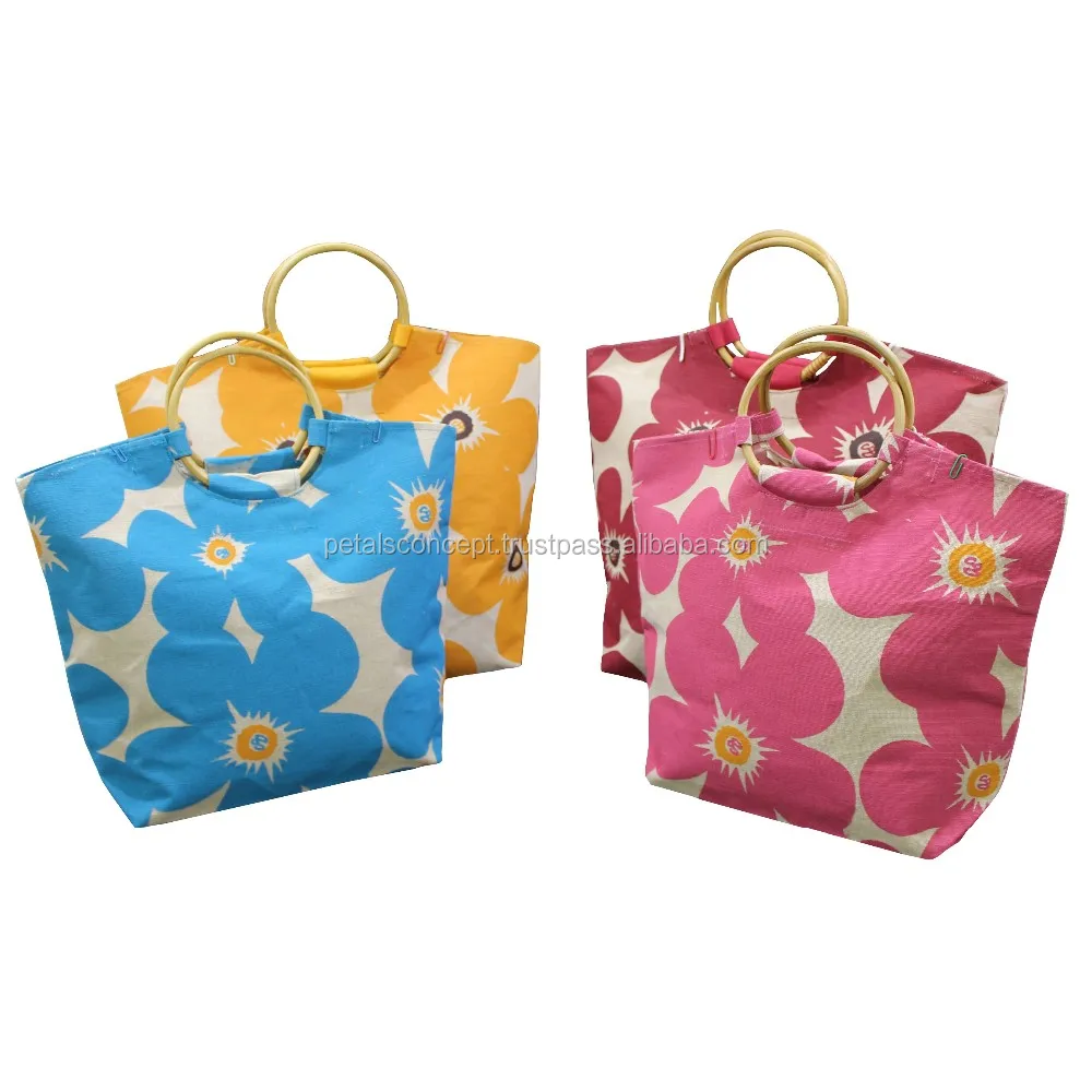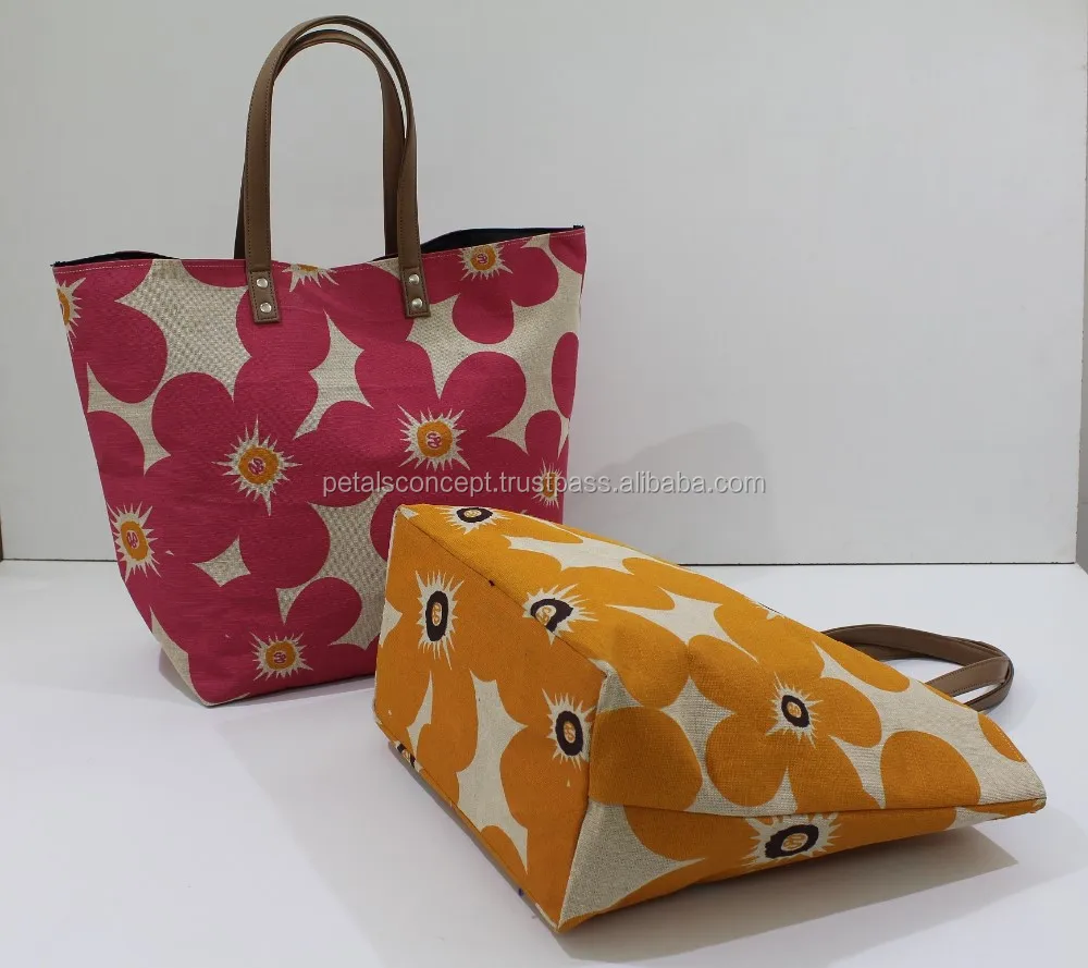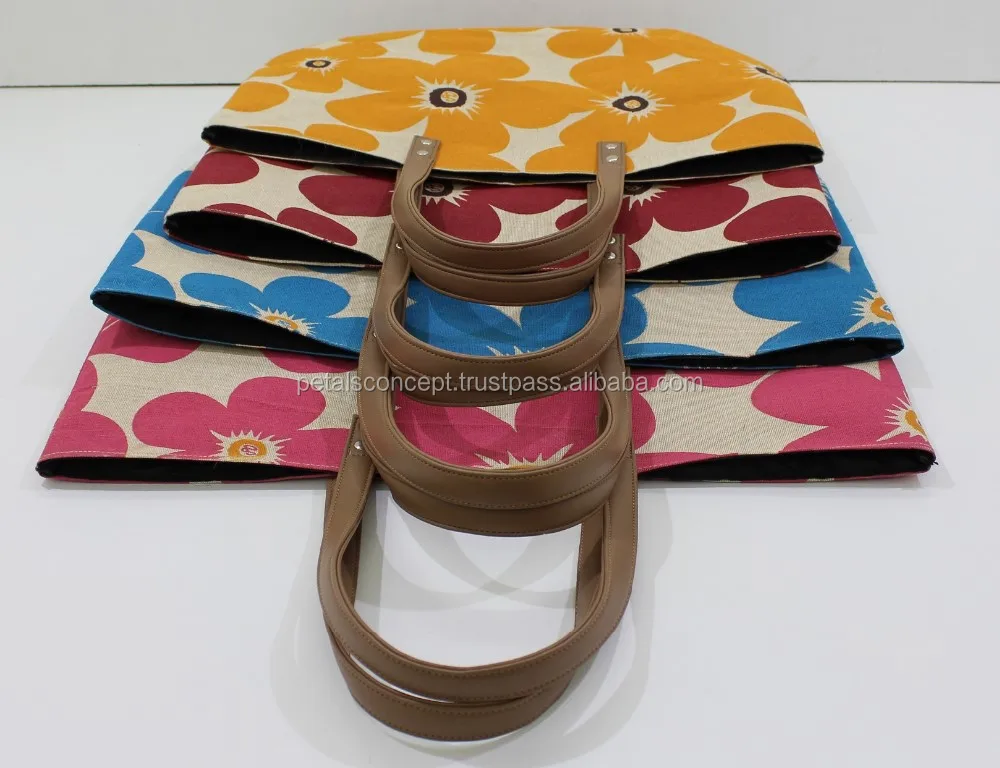 Our beautiful bags come in different shape , style , Size & design with variety of print like floral design , Animal texture print , landscape print , logo , Nature print , Stripe print etc with various option of Handle like Jute , cotton , web handle, Wooden handle ,Cane handle, Leather handle , Padded Rope handle , Bamboo handle etc & can be customize according to requirement.