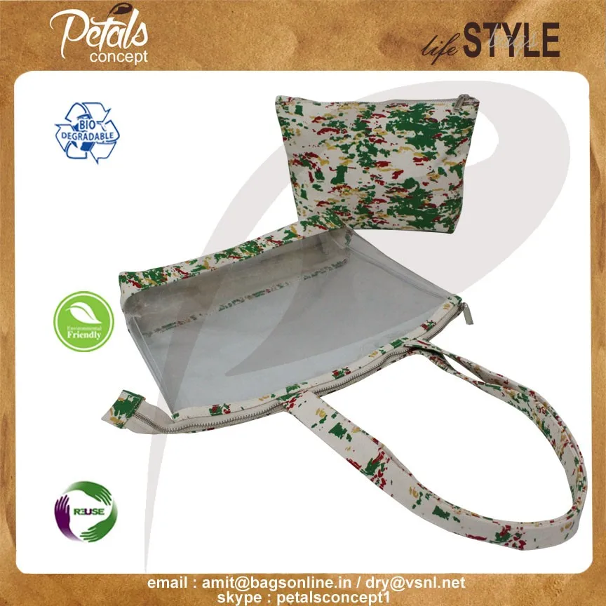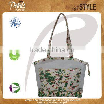 Our beautiful bags come in different shape , style , Size & design with variety of print like floral design , Animal texture print , landscape print , logo , Nature print , Stripe print etc with various option of Handle like Jute , cotton , web handle, Wooden handle ,Cane handle, Leather handle , Padded Rope handle , Bamboo handle etc & can be customize according to requirement.