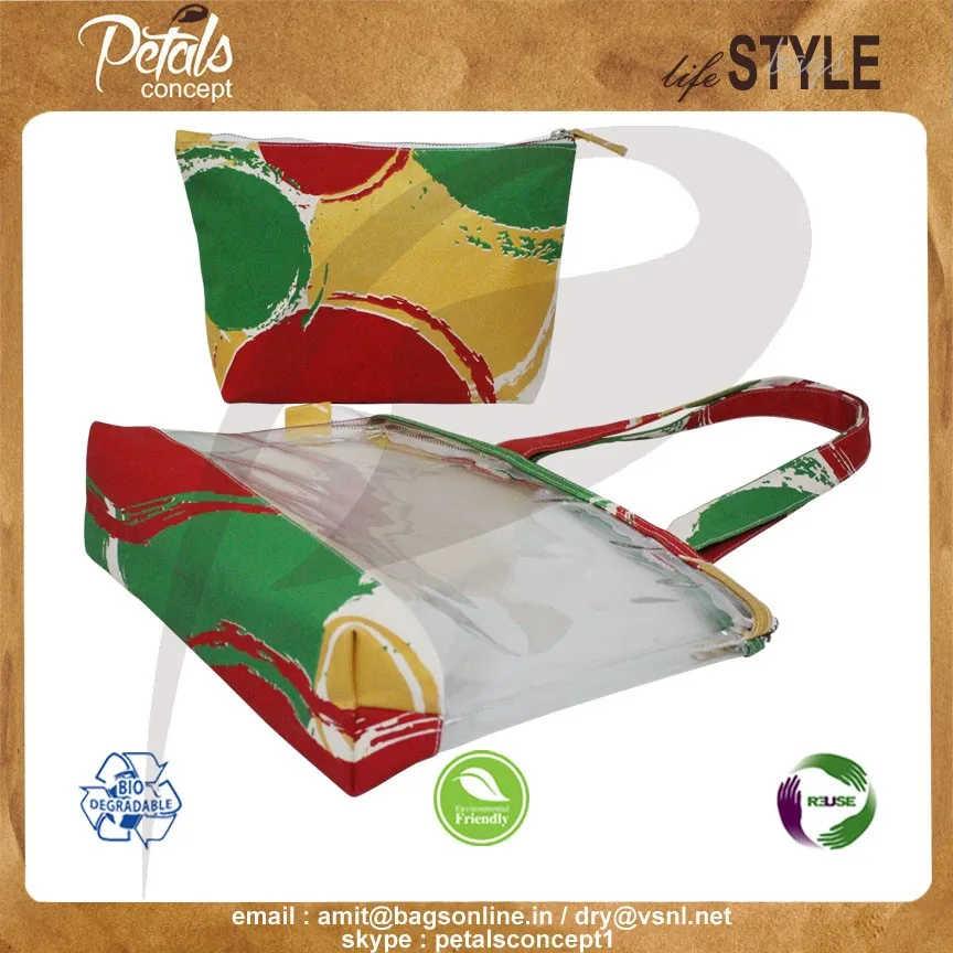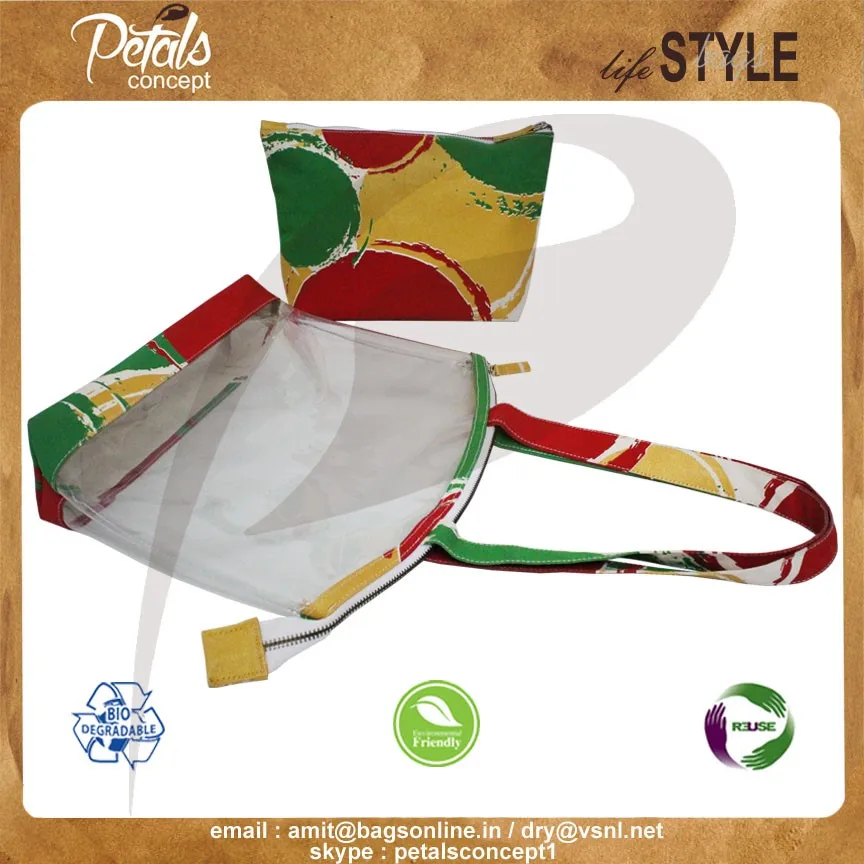 Our beautiful bags come in different shape , style , Size & design with variety of print like floral design , Animal texture print , landscape print , logo , Nature print , Stripe print etc with various option of Handle like Jute , cotton , web handle, Wooden handle ,Cane handle, Leather handle , Padded Rope handle , Bamboo handle etc & can be customize according to requirement.