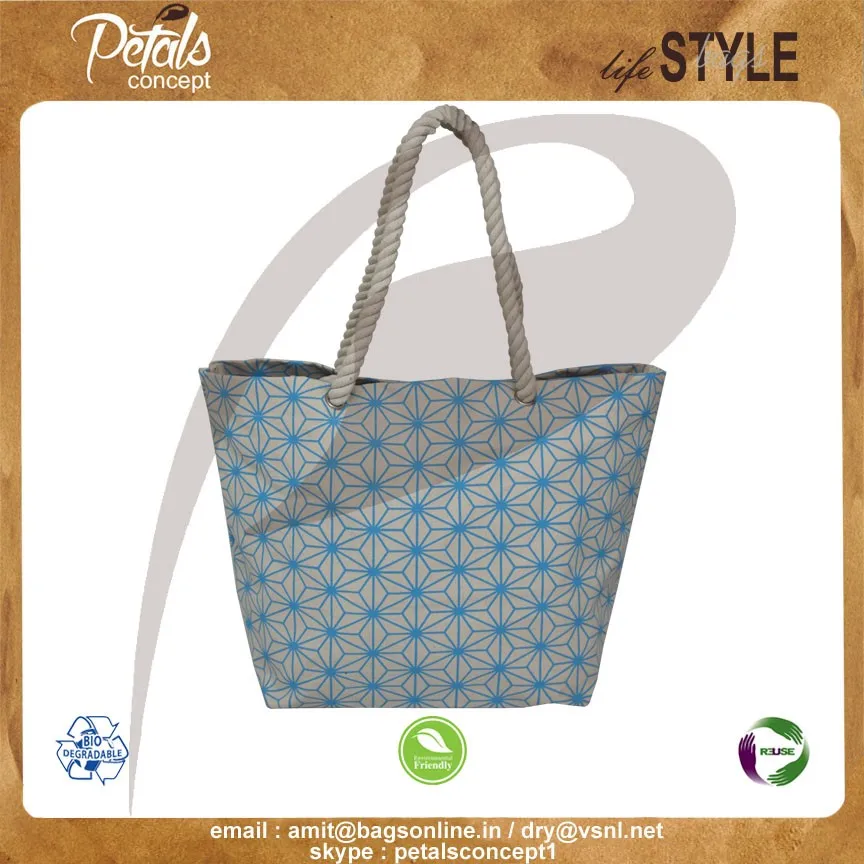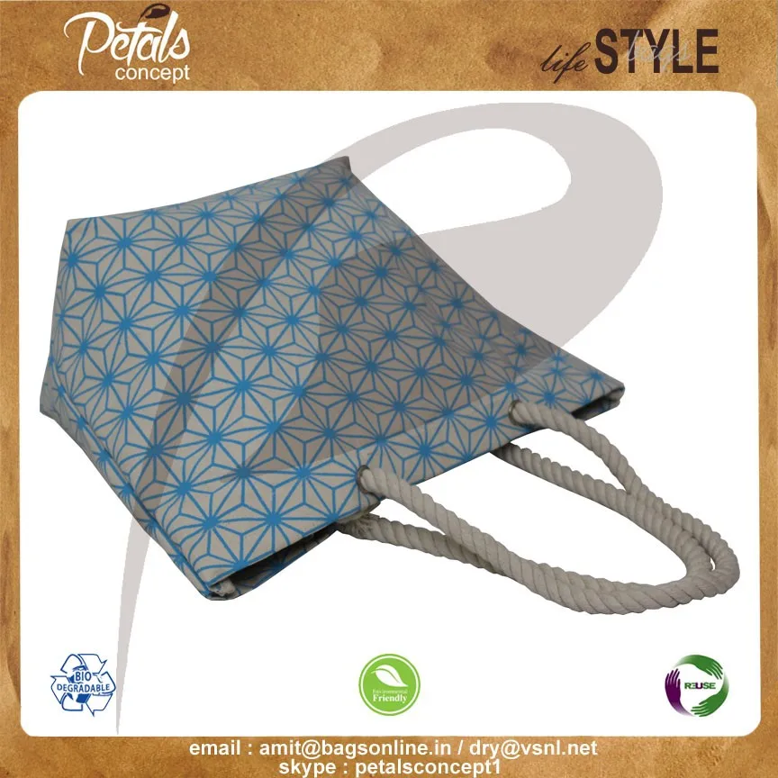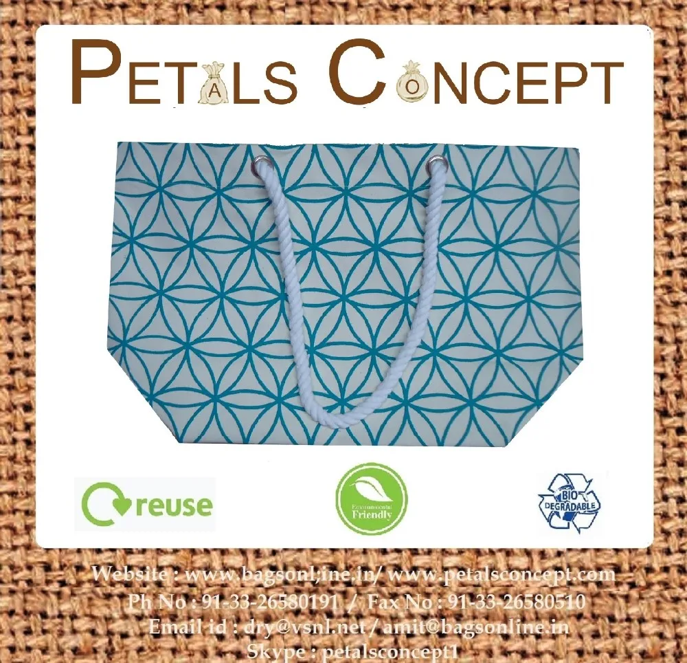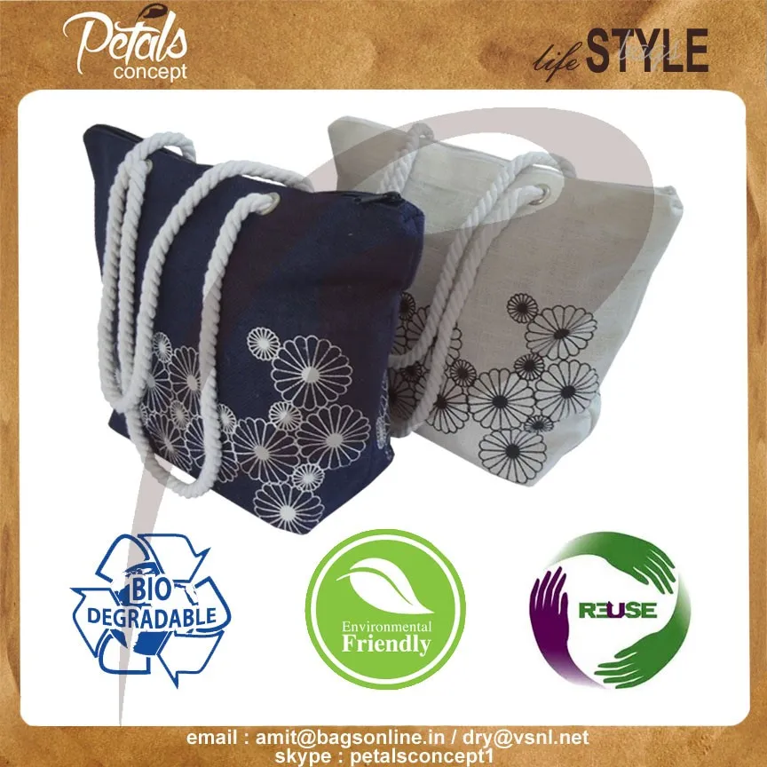 Our beautiful bags come in different shape , style , Size & design with variety of print like floral design , Animal texture print , landscape print , logo , Nature print , Stripe print etc with various option of Handle like Jute , cotton , web handle, Wooden handle ,Cane handle, Leather handle , Padded Rope handle , Bamboo handle etc & can be customize according to requirement.
