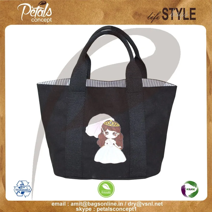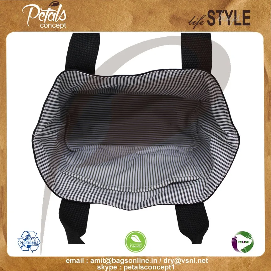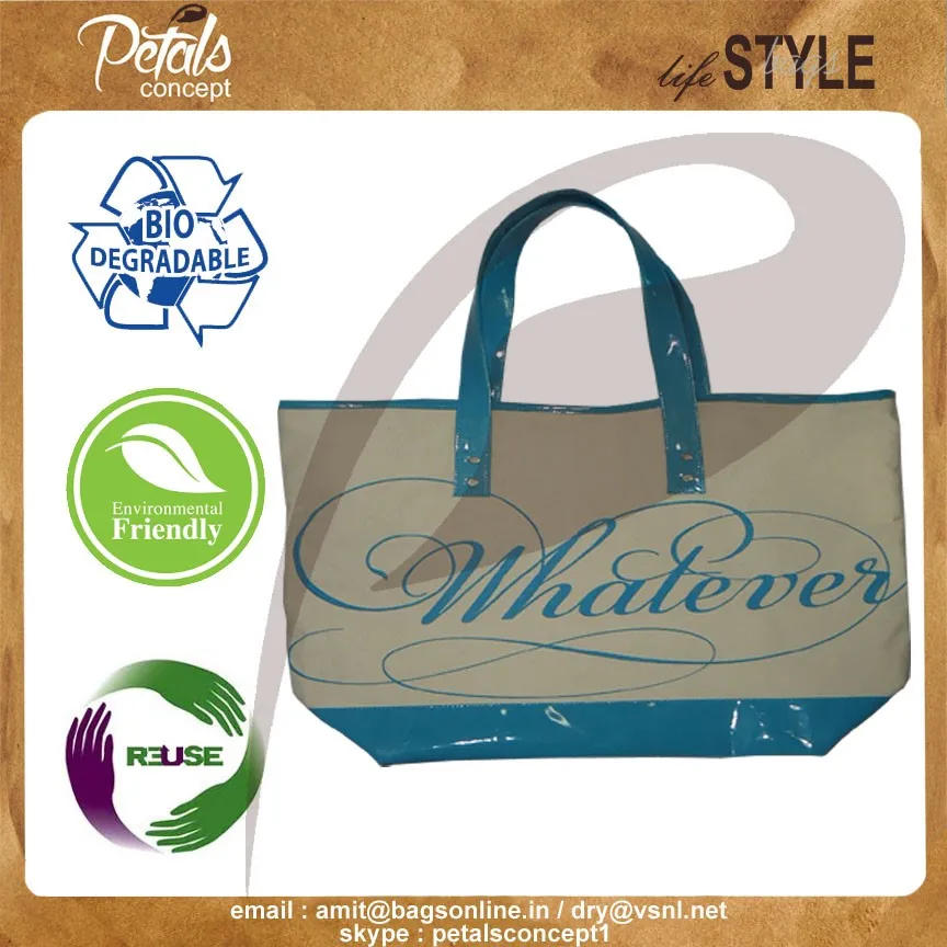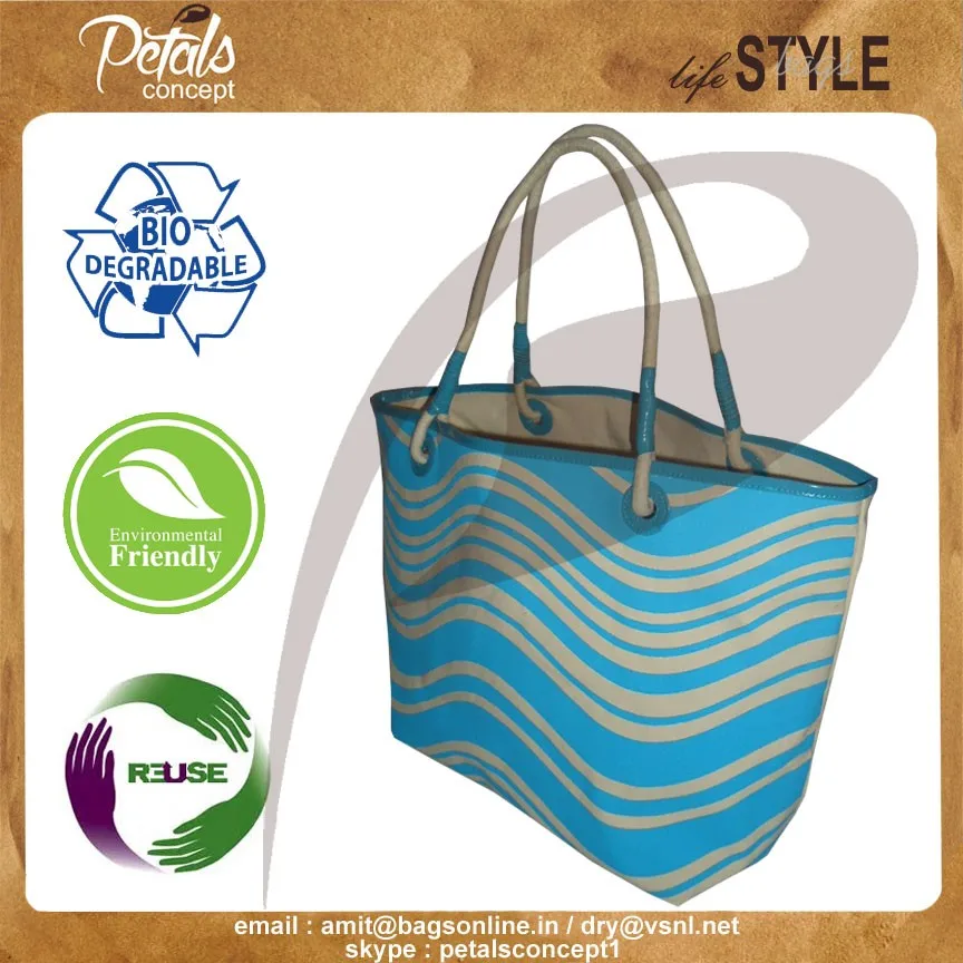 Our beautiful bags come in different shape , style , Size & design with variety of print like floral design , Animal texture print , landscape print , logo , Nature print , Stripe print etc with various option of Handle like Jute , cotton , web handle, Wooden handle ,Cane handle, Leather handle , Padded Rope handle , Bamboo handle etc & can be customize according to requirement.