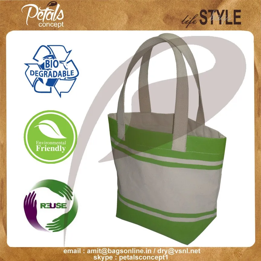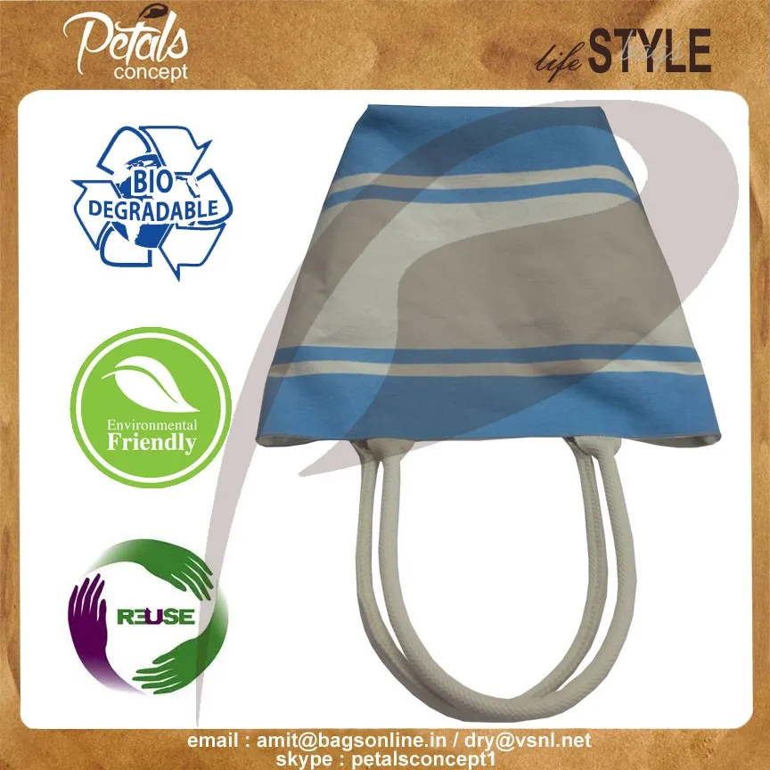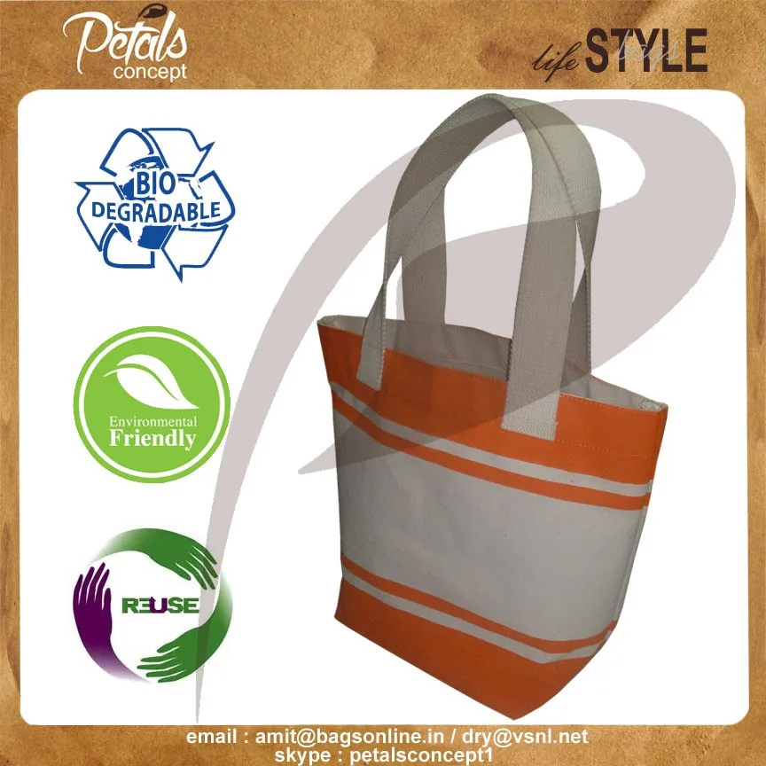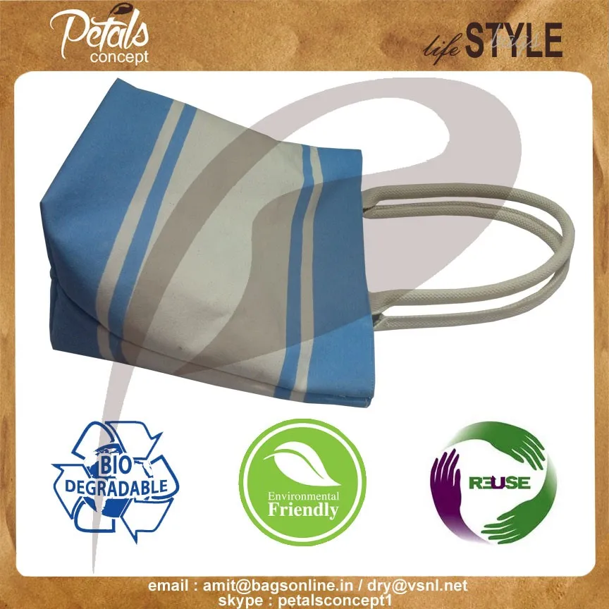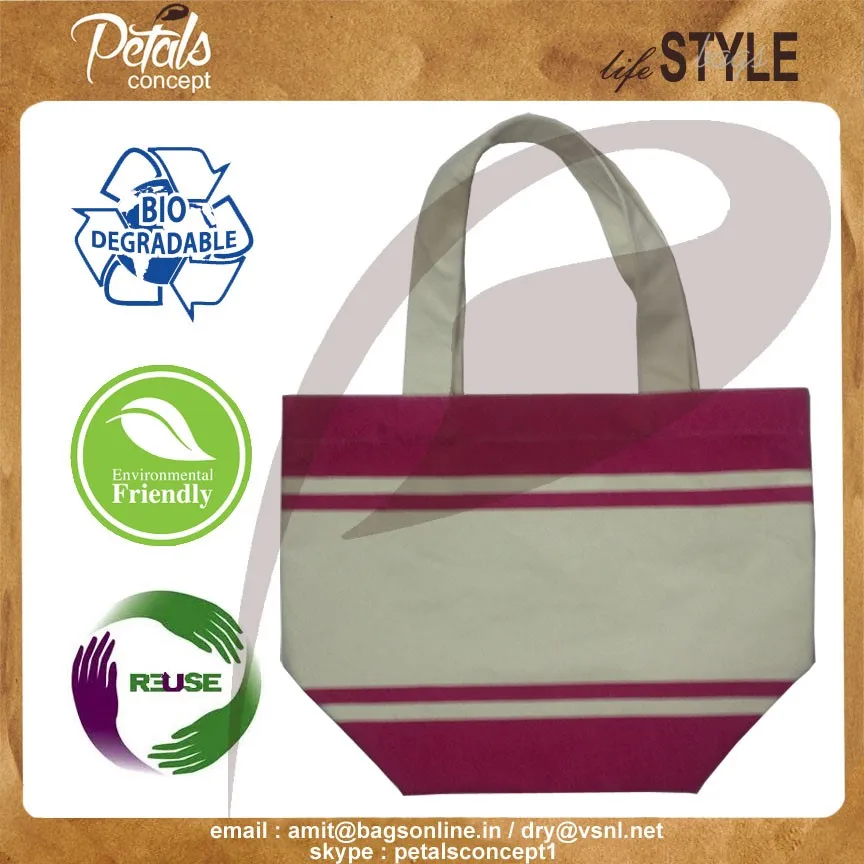 Our beautiful bags come in different shape , style , Size & design with variety of print like floral design , Animal texture print , landscape print , logo , Nature print , Stripe print etc with various option of Handle like Jute , cotton , web handle, Wooden handle ,Cane handle, Leather handle , Padded Rope handle , Bamboo handle etc & can be customize according to requirement.