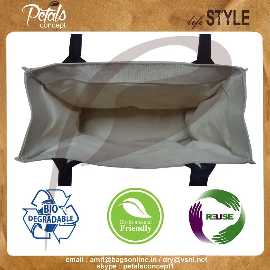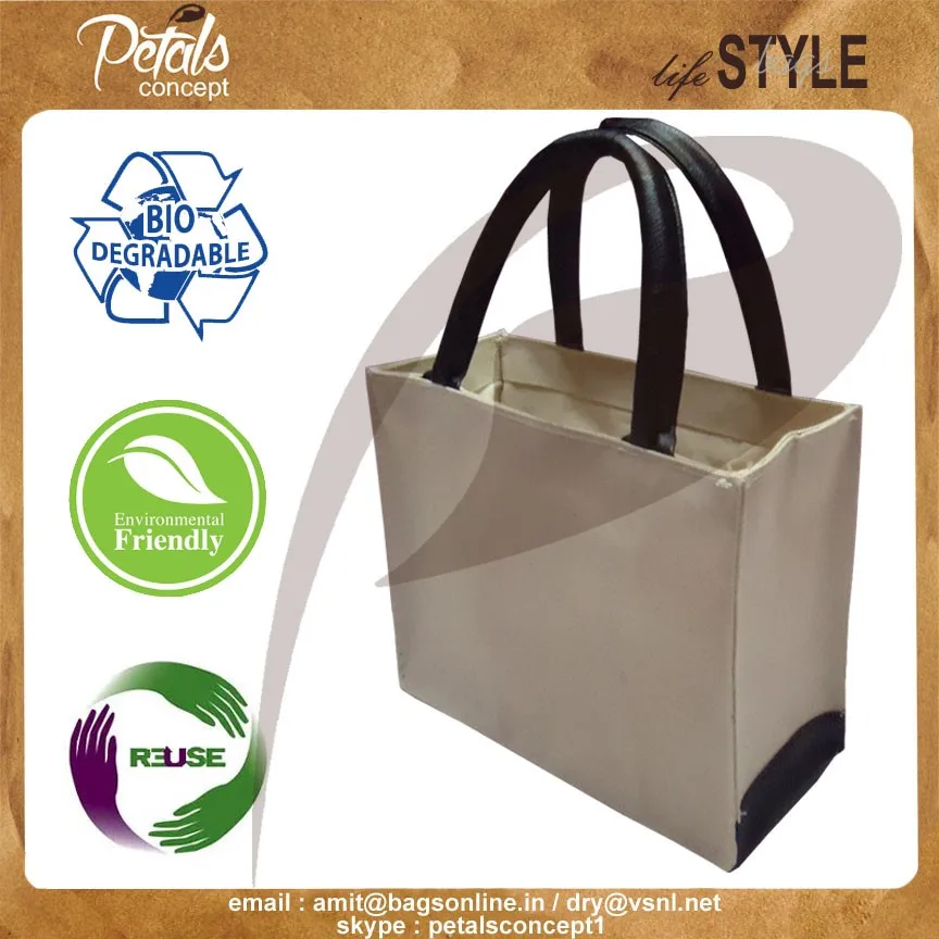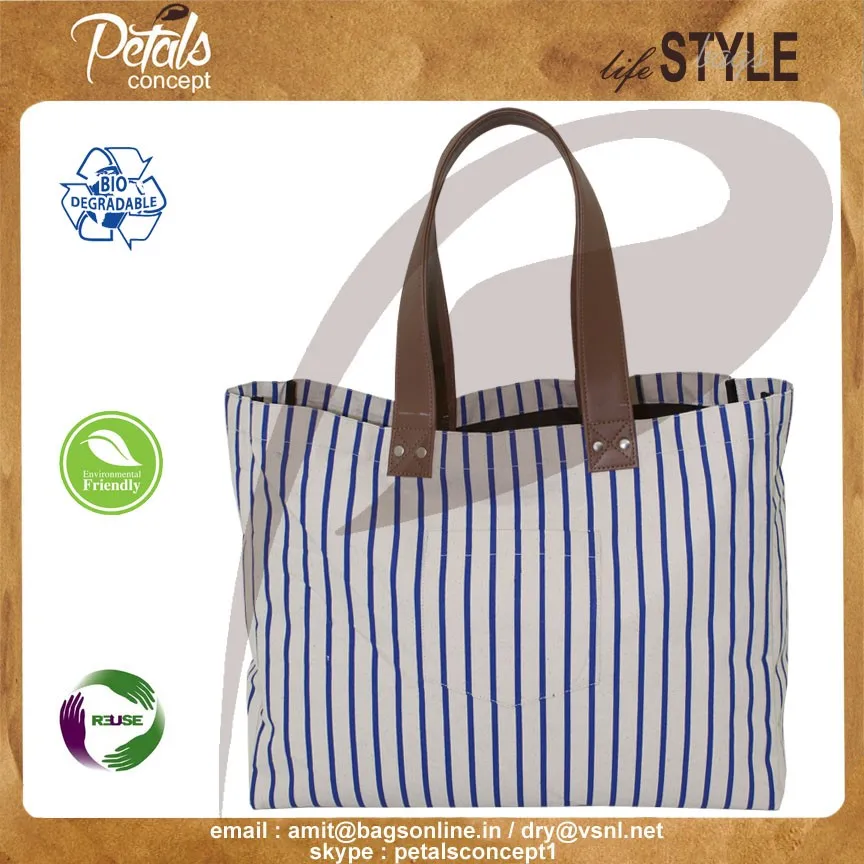 Our beautiful bags come in different shape , style , Size & design with variety of print like floral design , Animal texture print , landscape print , logo , Nature print , Stripe print etc with various option of Handle like Jute , cotton , web handle, Wooden handle ,Cane handle, Leather handle , Padded Rope handle , Bamboo handle etc & can be customize according to requirement.