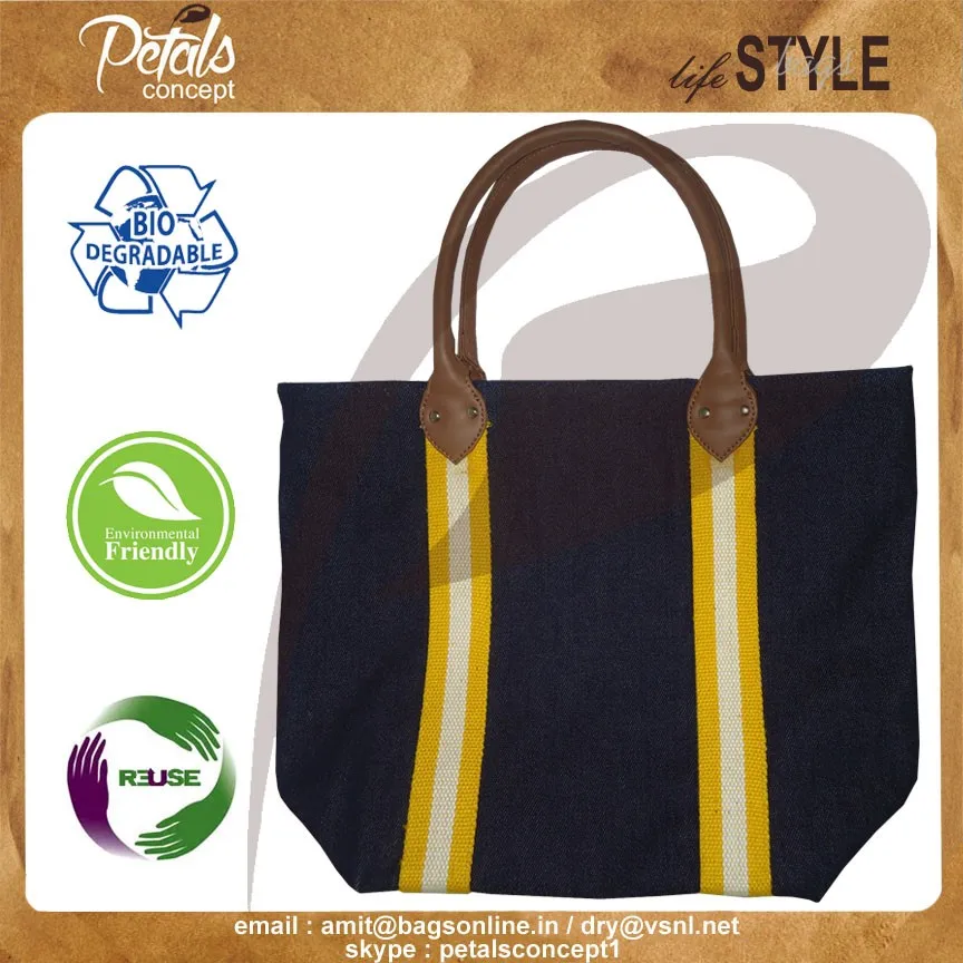 Our beautiful bags come in different shape , style , Size & design with variety of print like floral design , Animal texture print , landscape print , logo , Nature print , Stripe print etc with various option of Handle like Jute , cotton , web handle, Wooden handle ,Cane handle, Leather handle , Padded Rope handle , Bamboo handle etc & can be customize according to requirement.
