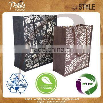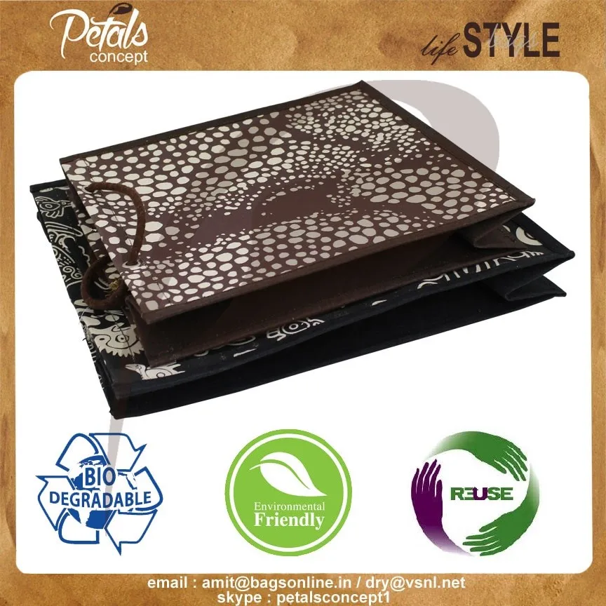 Our beautiful bags come in different shape , style , Size & design with variety of print like floral design , Animal texture print , landscape print , logo , Nature print , Stripe print etc with various option of Handle like Jute , cotton , web handle, Wooden handle ,Cane handle, Leather handle , Padded Rope handle , Bamboo handle etc & can be customize according to requirement.