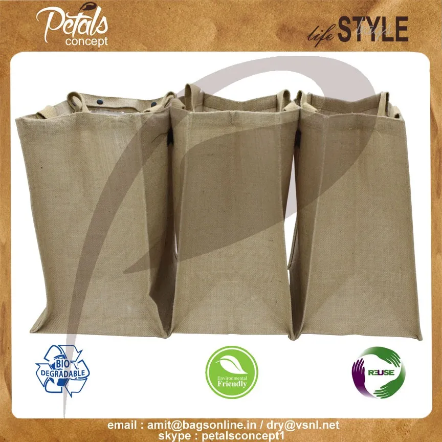 2017 Designer PP Laminated Jute Tote Bag With Web Handle Set of Three Bag