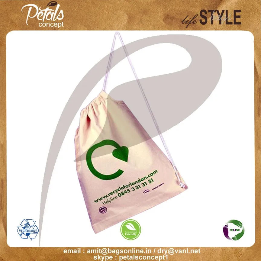 Cheap Low Cost Packaging Bag Made From Natural 10 oz Washed Canvas Drawstring Back Pack