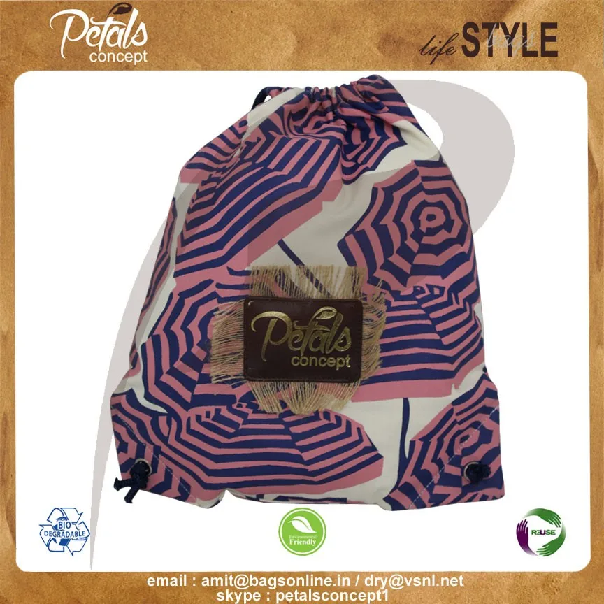 Our beautiful bags come in different shape , style , Size & design with variety of print like floral design , Animal texture print , landscape print , logo , Nature print , Stripe print etc with various option of Handle like Jute , cotton , web handle, Wooden handle ,Cane handle, Leather handle , Padded Rope handle , Bamboo handle etc & can be customize according to requirement.
