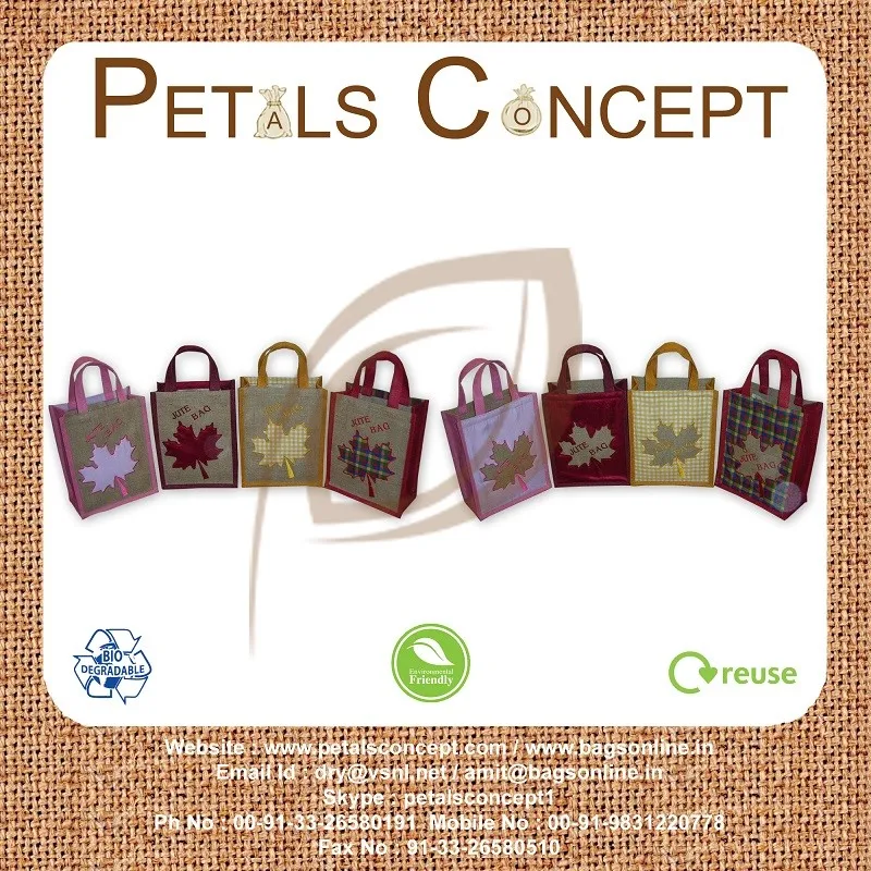 Our beautiful bags come in different shape , style , Size & design with variety of print like floral design , Animal texture print , landscape print , logo , Nature print , Stripe print etc with various option of Handle like Jute , cotton , web handle, Wooden handle ,Cane handle, Leather handle , Padded Rope handle , Bamboo handle etc & can be customize according to requirement.