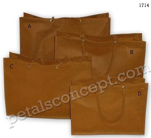 We have a wide category of bags for all purposes like Shopping bag , Tote bag , Calico bag , Grocery bag , Beach bag , Promotional bag , Reversible bag , Wine bag , Window bag , Drawstring bag , Jewelry pouch , Gift bag etc .