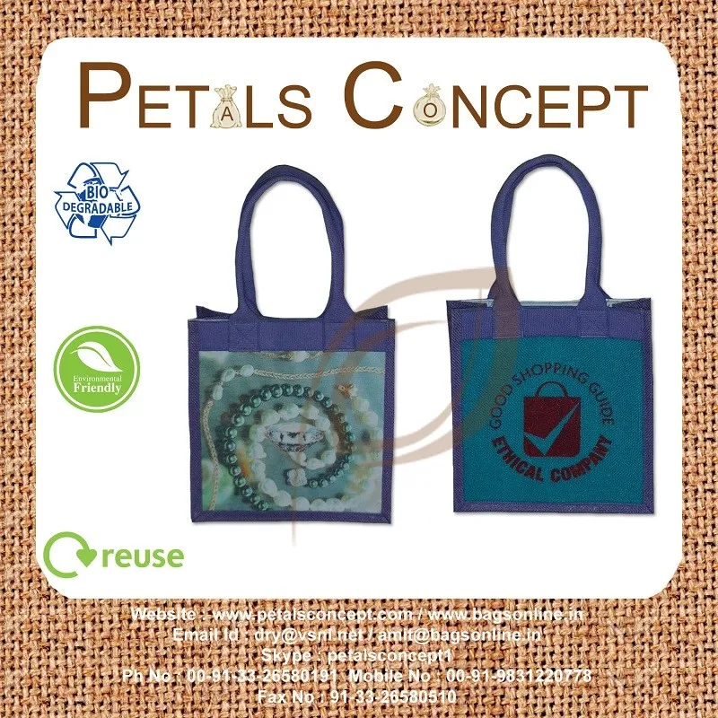 We work in Bag industry from 2002 & we are leading Manufacturer & Exporter of Re-useable bags made from Jute , Cotton , Velvet , Juco , Satin , Raw silk , Polyester , Imitation leather etc Fabric . We are popular in the industry due to our high Quality Bags & its superior Quality Craftsmanship .