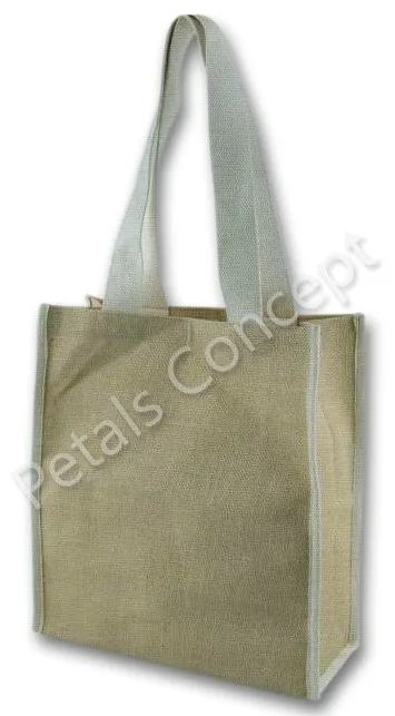 Non Laminated Jute Tote Bag With Cotton Web Handle