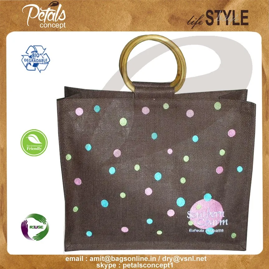 Our beautiful bags come in different shape , style , Size & design with variety of print like floral design , Animal texture print , landscape print , logo , Nature print , Stripe print etc with various option of Handle like Jute , cotton , web handle, Wooden handle ,Cane handle, Leather handle , Padded Rope handle , Bamboo handle etc & can be customize according to requirement.