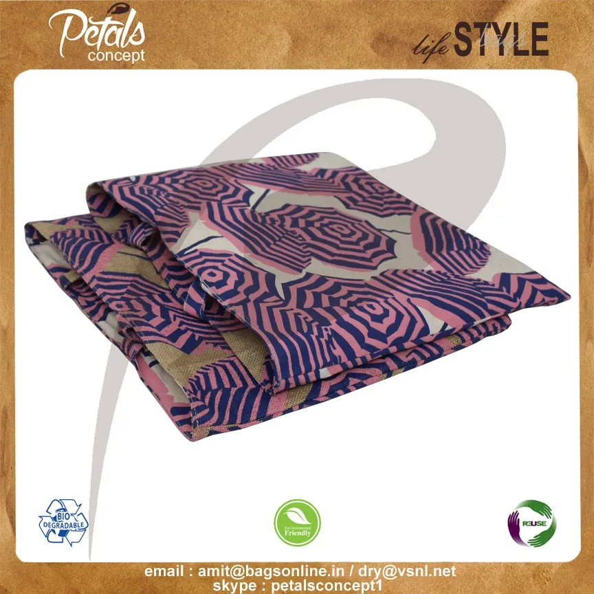 Our beautiful bags come in different shape , style , Size & design with variety of print like floral design , Animal texture print , landscape print , logo , Nature print , Stripe print etc with various option of Handle like Jute , cotton , web handle, Wooden handle ,Cane handle, Leather handle , Padded Rope handle , Bamboo handle etc & can be customize according to requirement.