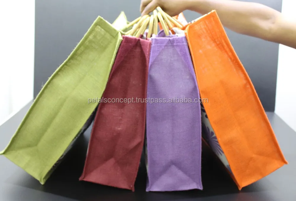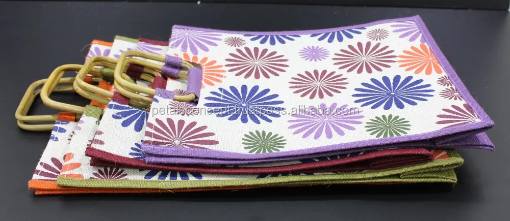Our beautiful bags come in different shape , style , Size & design with variety of print like floral design , Animal texture print , landscape print , logo , Nature print , Stripe print etc with various option of Handle like Jute , cotton , web handle, Wooden handle ,Cane handle, Leather handle , Padded Rope handle , Bamboo handle etc & can be customize according to requirement.
