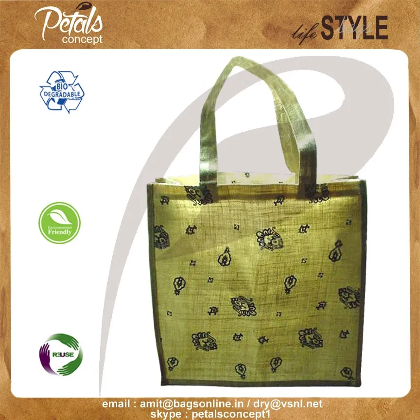 Our beautiful bags come in different shape , style , Size & design with variety of print like floral design , Animal texture print , landscape print , logo , Nature print , Stripe print etc with various option of Handle like Jute , cotton , web handle, Wooden handle ,Cane handle, Leather handle , Padded Rope handle , Bamboo handle etc & can be customize according to requirement.