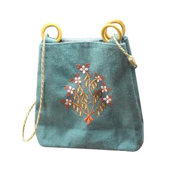 Customize Label Jute Bag With Wooden Apple Shape Cane Handle & With Jute Web Handle