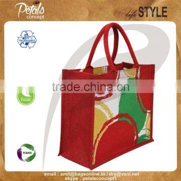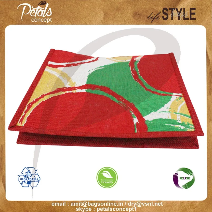 PP Laminated Jute Tote Bag With Padded Rope Handle With Three Color Front & Back Print