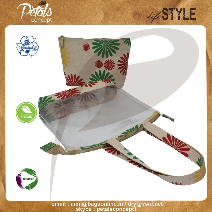 Our beautiful bags come in different shape , style , Size & design with variety of print like floral design , Animal texture print , landscape print , logo , Nature print , Stripe print etc with various option of Handle like Jute , cotton , web handle, Wooden handle ,Cane handle, Leather handle , Padded Rope handle , Bamboo handle etc & can be customize according to requirement.