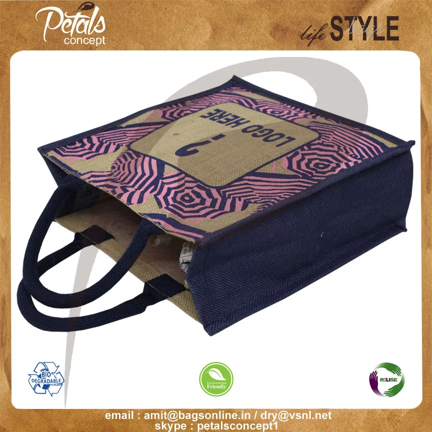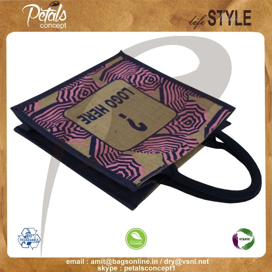 Our beautiful bags come in different shape , style , Size & design with variety of print like floral design , Animal texture print , landscape print , logo , Nature print , Stripe print etc with various option of Handle like Jute , cotton , web handle, Wooden handle ,Cane handle, Leather handle , Padded Rope handle , Bamboo handle etc & can be customize according to requirement.