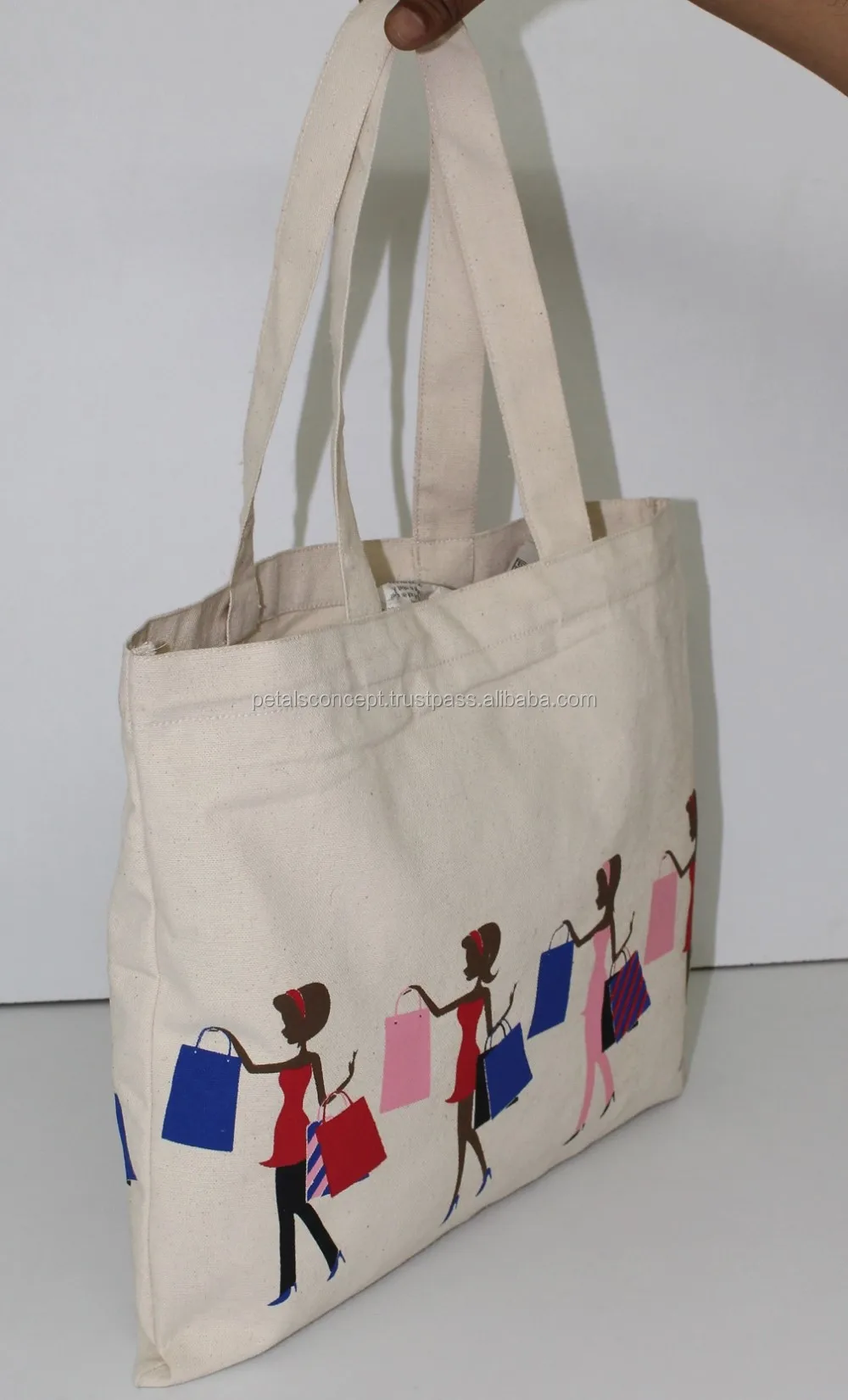 Our beautiful bags come in different shape , style , Size & design with variety of print like floral design , Animal texture print , landscape print , logo , Nature print , Stripe print etc with various option of Handle like Jute , cotton , web handle, Wooden handle ,Cane handle, Leather handle , Padded Rope handle , Bamboo handle etc & can be customize according to requirement.