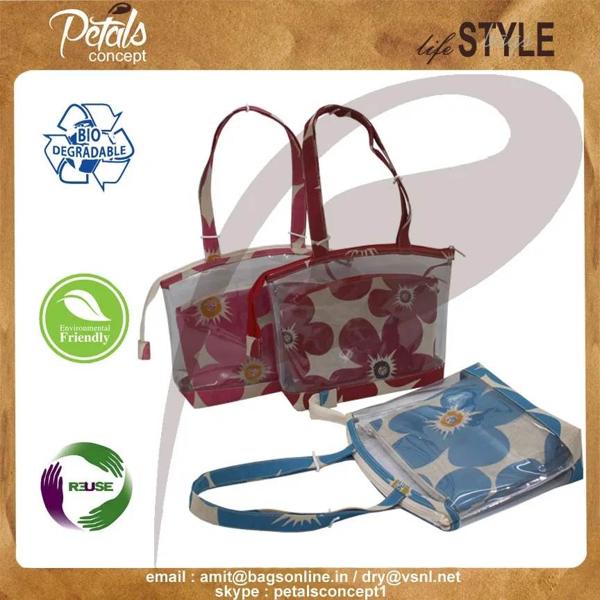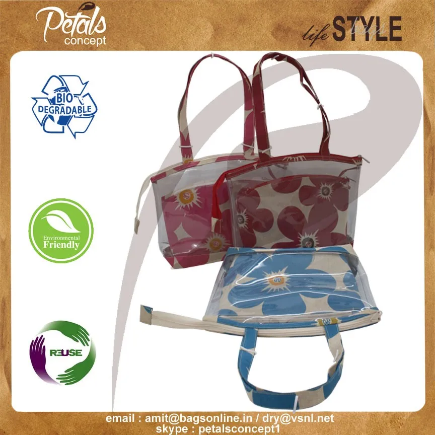 Our beautiful bags come in different shape , style , Size & design with variety of print like floral design , Animal texture print , landscape print , logo , Nature print , Stripe print etc with various option of Handle like Jute , cotton , web handle, Wooden handle ,Cane handle, Leather handle , Padded Rope handle , Bamboo handle etc & can be customize according to requirement.