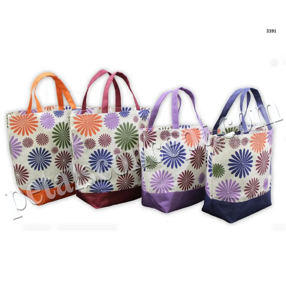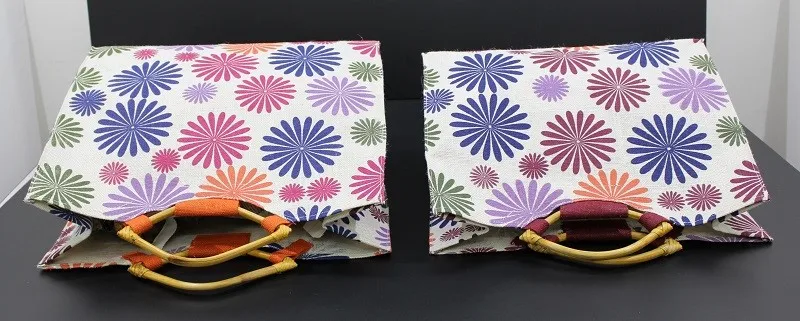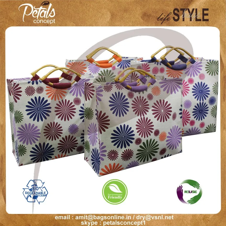 Our beautiful bags come in different shape , style , Size & design with variety of print like floral design , Animal texture print , landscape print , logo , Nature print , Stripe print etc with various option of Handle like Jute , cotton , web handle, Wooden handle ,Cane handle, Leather handle , Padded Rope handle , Bamboo handle etc & can be customize according to requirement.