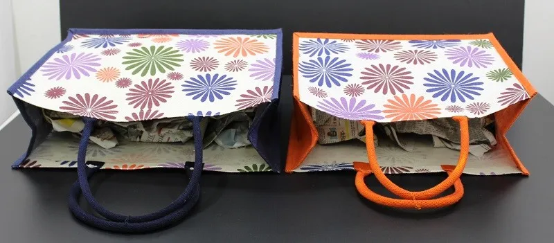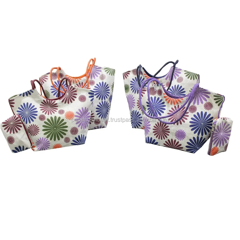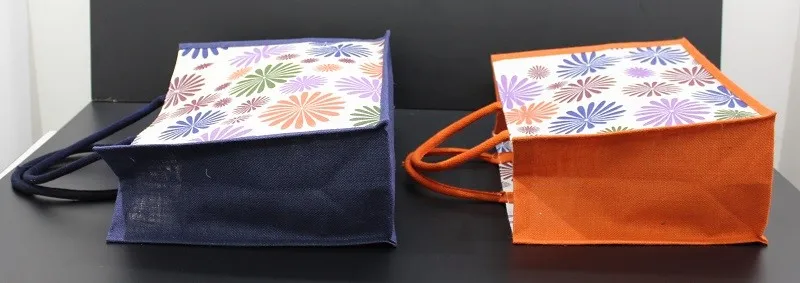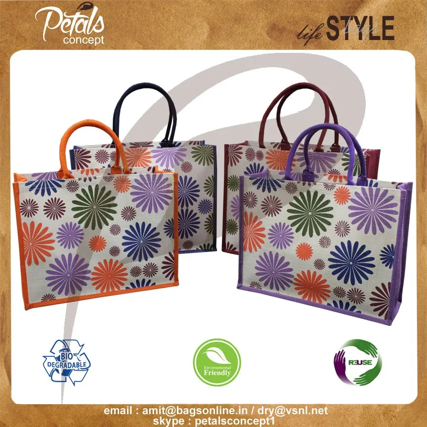 Customize Biodegradeable Flora Print Jute Tote Bag With Padded Rope Handle