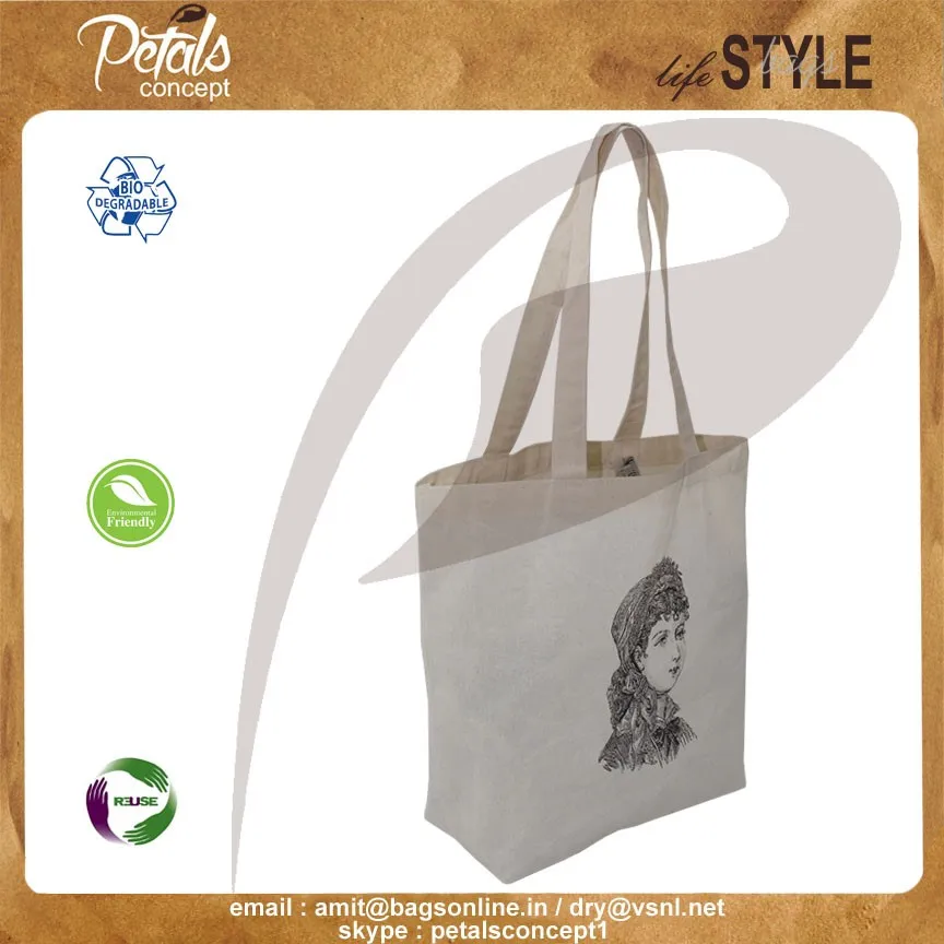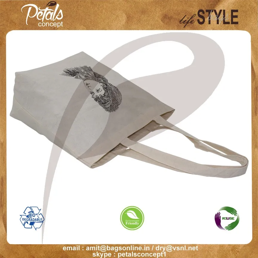 Our beautiful bags come in different shape , style , Size & design with variety of print like floral design , Animal texture print , landscape print , logo , Nature print , Stripe print etc with various option of Handle like Jute , cotton , web handle, Wooden handle ,Cane handle, Leather handle , Padded Rope handle , Bamboo handle etc & can be customize according to requirement.