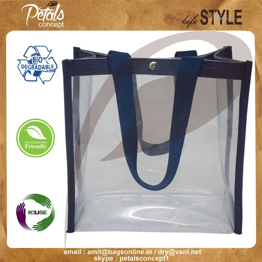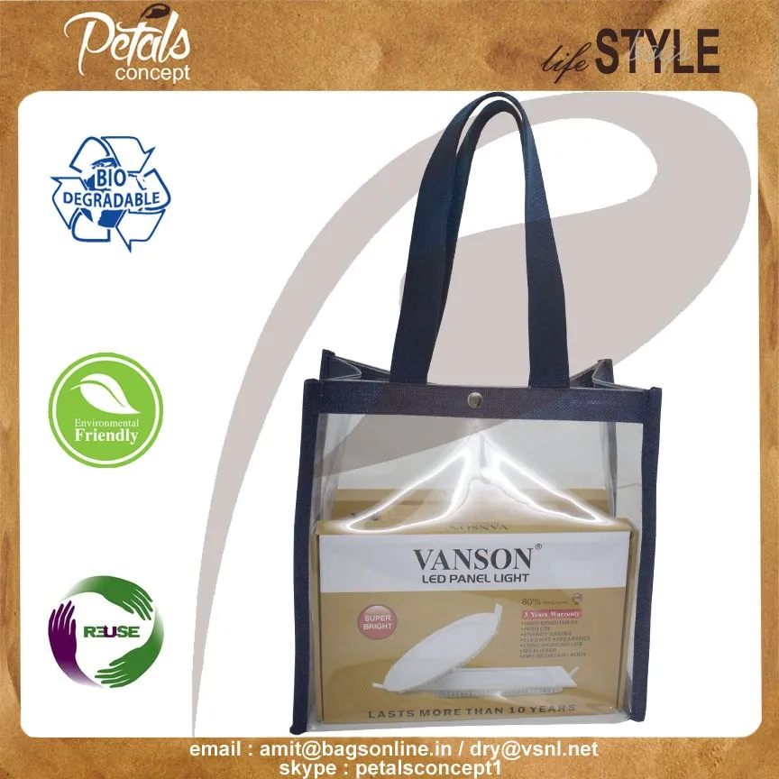 Clear Pvc See Through Jute Trimming Tote Bag With Cotton Web Handle