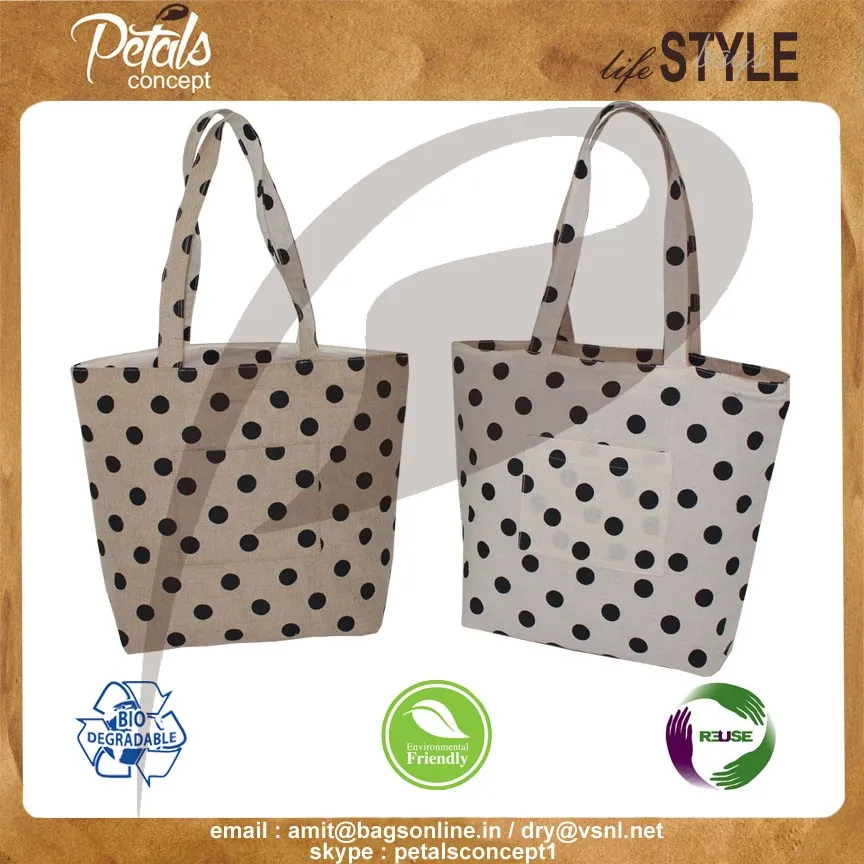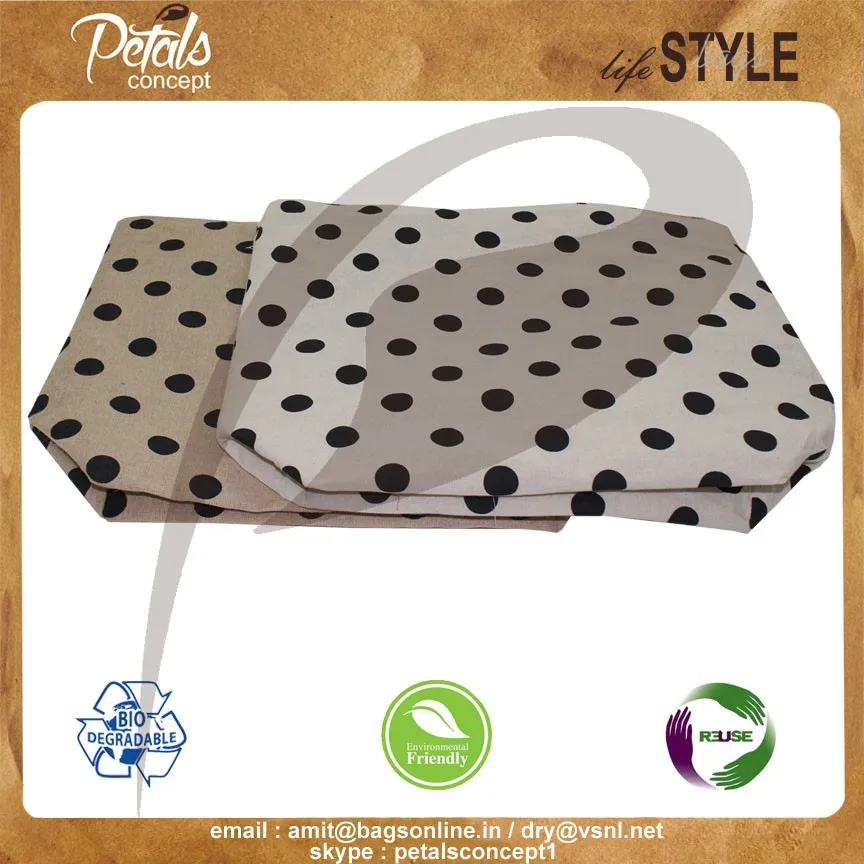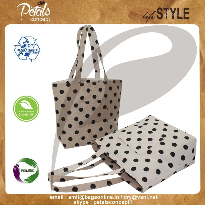 Our beautiful bags come in different shape , style , Size & design with variety of print like floral design , Animal texture print , landscape print , logo , Nature print , Stripe print etc with various option of Handle like Jute , cotton , web handle, Wooden handle ,Cane handle, Leather handle , Padded Rope handle , Bamboo handle etc & can be customize according to requirement.