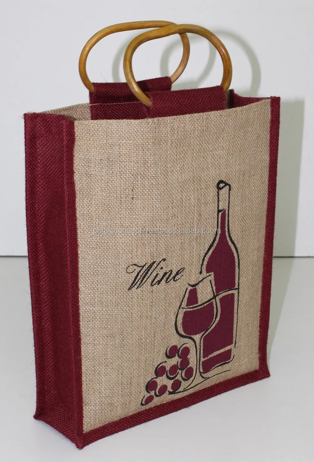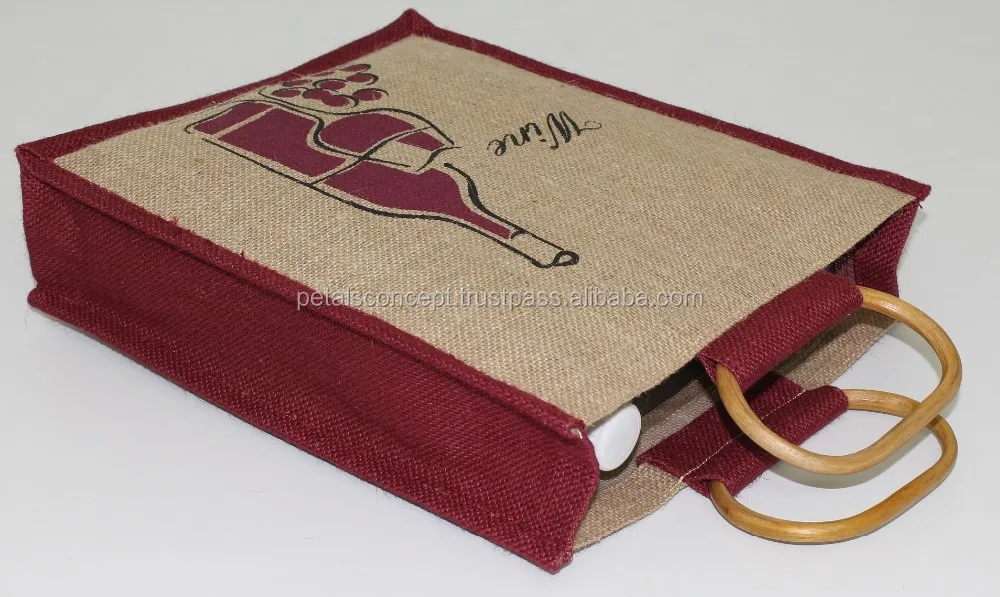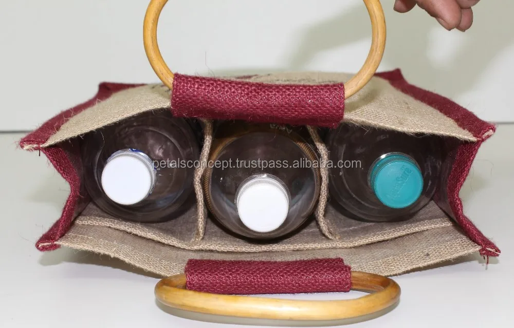 Strong Bag for Three Wine Bottles Jute Bag With Window -promotional Wholesale Custom Three Bottle Wine Bag