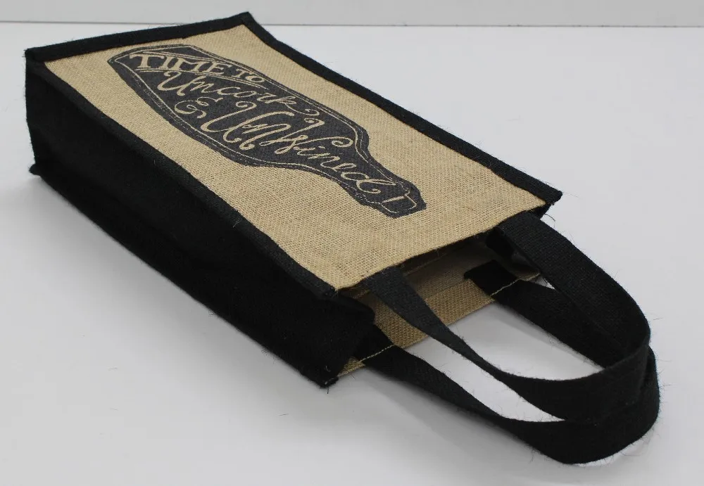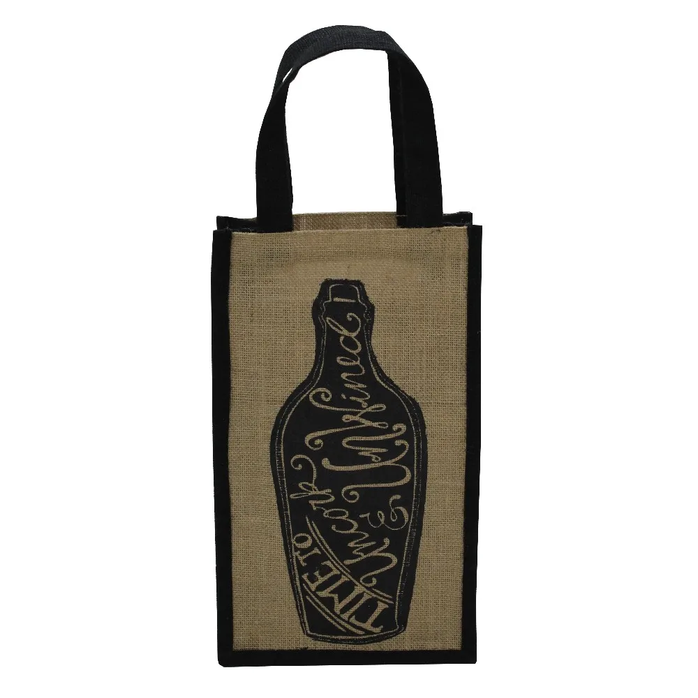 PP Laminated Jute Two Bottle Wine bag with Cotton Rope Handle & with inside bottle partition