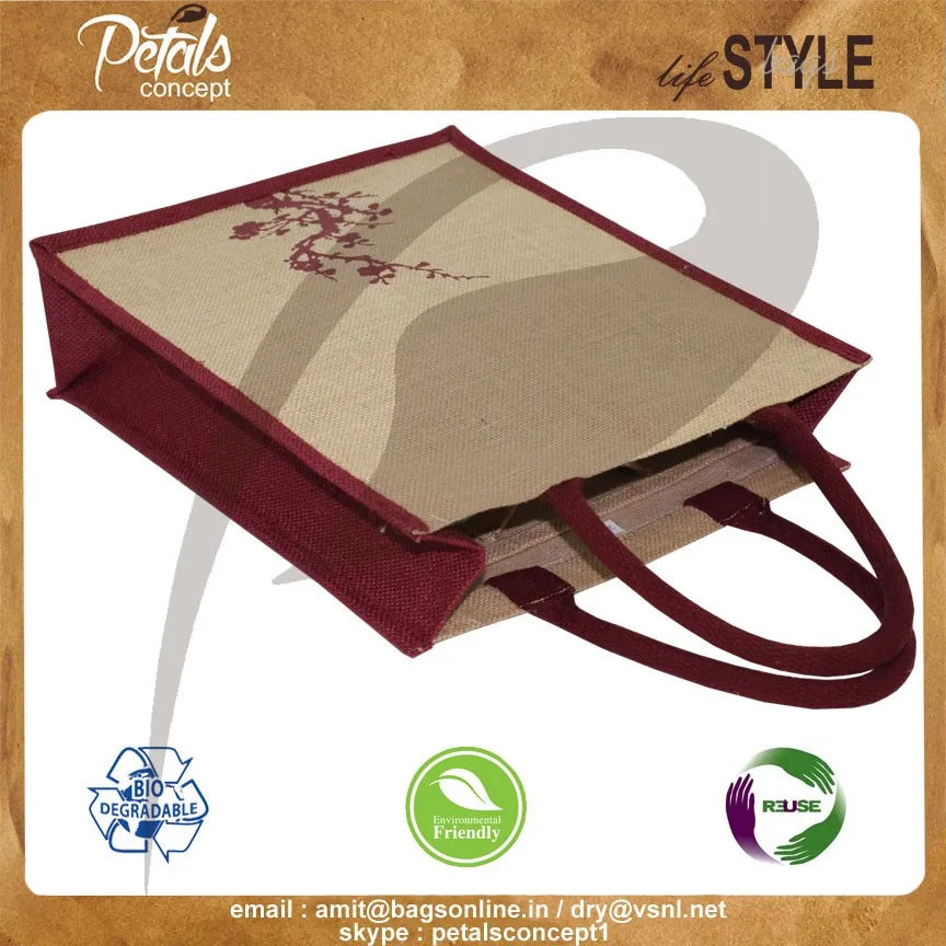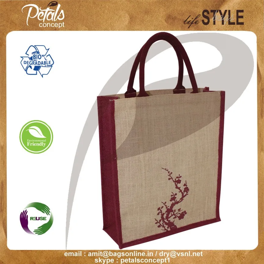 Our beautiful bags come in different shape , style , Size & design with variety of print like floral design , Animal texture print , landscape print , logo , Nature print , Stripe print etc with various option of Handle like Jute , cotton , web handle, Wooden handle ,Cane handle, Leather handle , Padded Rope handle , Bamboo handle etc & can be customize according to requirement.