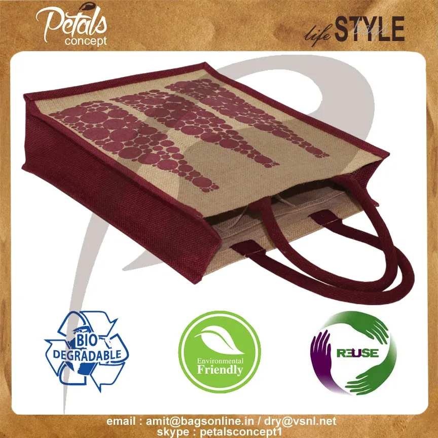 Our beautiful bags come in different shape , style , Size & design with variety of print like floral design , Animal texture print , landscape print , logo , Nature print , Stripe print etc with various option of Handle like Jute , cotton , web handle, Wooden handle ,Cane handle, Leather handle , Padded Rope handle , Bamboo handle etc & can be customize according to requirement.