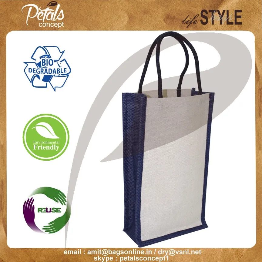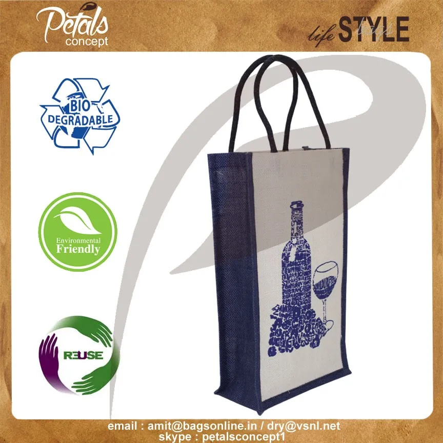 Two Bottle Bag for Water Bottle - Soft Cotton Ropw Handle - Made From pp Laminated Jute
