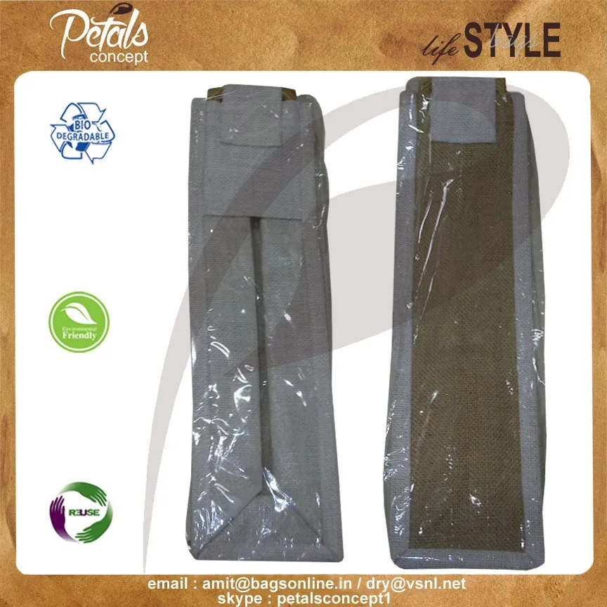 Home > Packaging & Printing > Food Packaging Bag > Stand Up Pouch > Jute Wine Bottle Bag With Wooden Cane Handle