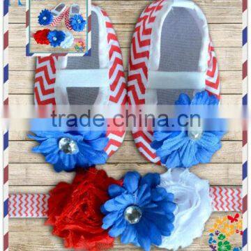 Baby Chevron Crib Set 4th of July Shoes and Headband Set Red Chevron Crib Shoes White Red Blue Flower Headband Baby Shoes