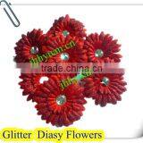 4" Red Glitter Gerbera Daisy Flower Glitter Spray Flower