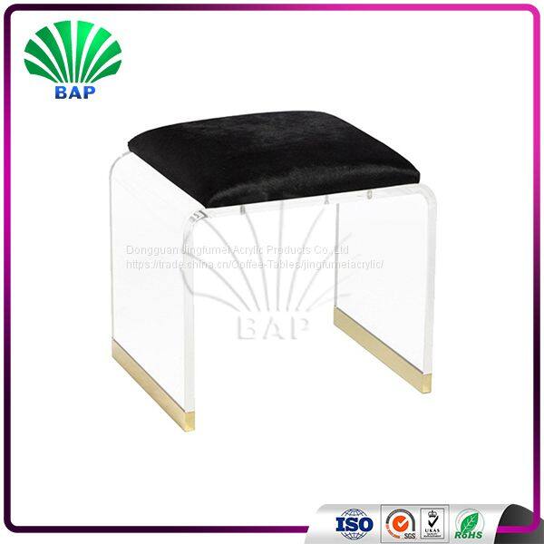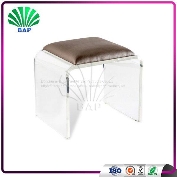 Beauty C-Shape Acrylic Stool Leather Cushion Ottomans Bedroom Lucite Bed Side Stool