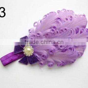 curly feather with pearl bead rhinestone for kids hair accessories