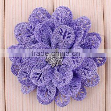 hot cutting fabric flower with rhinestone center for kids hair accessories