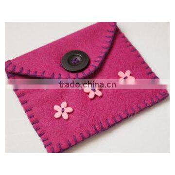 Best Selling Eco-friendly Leaves Decorated Handmade Felt Purse